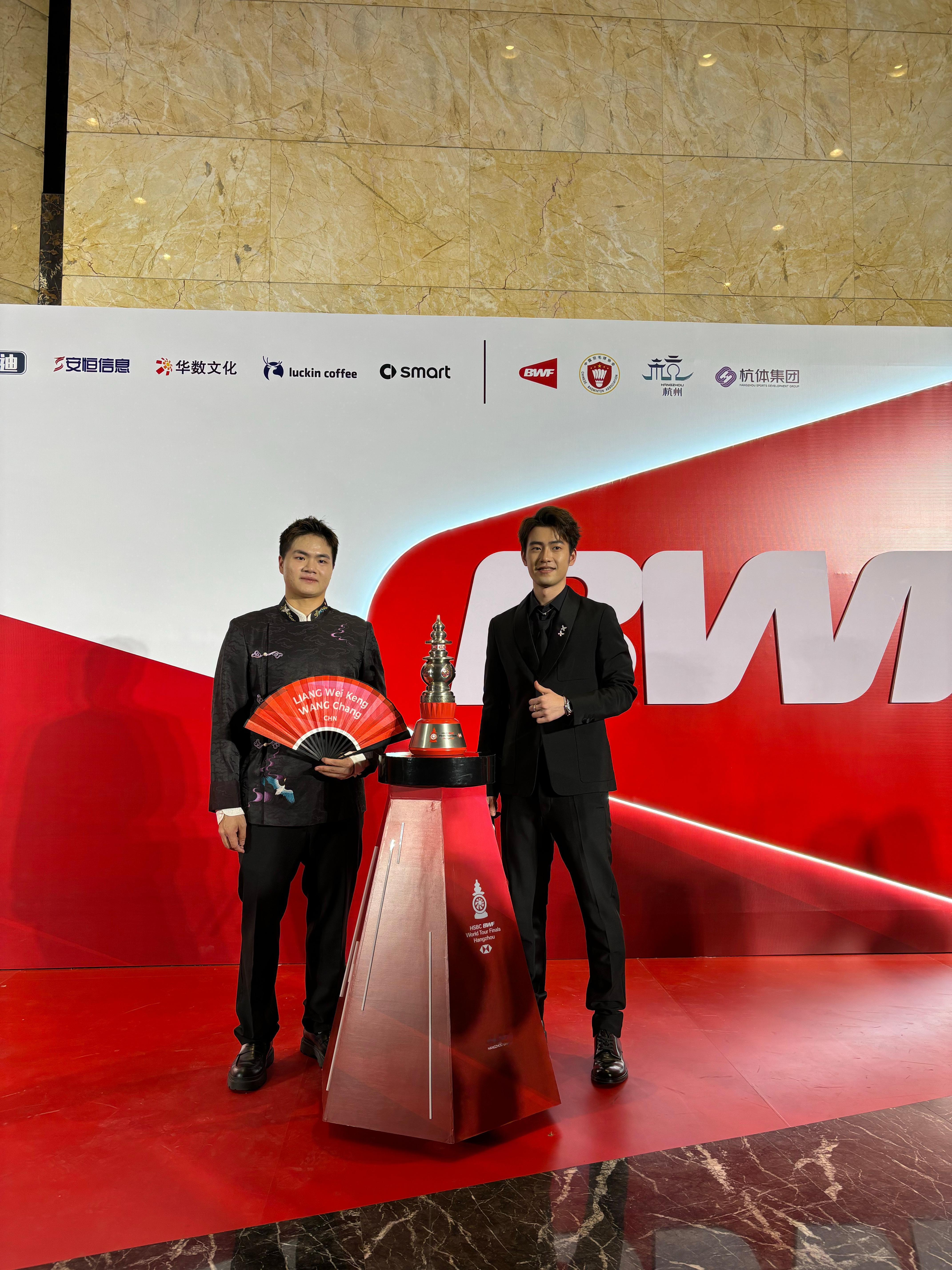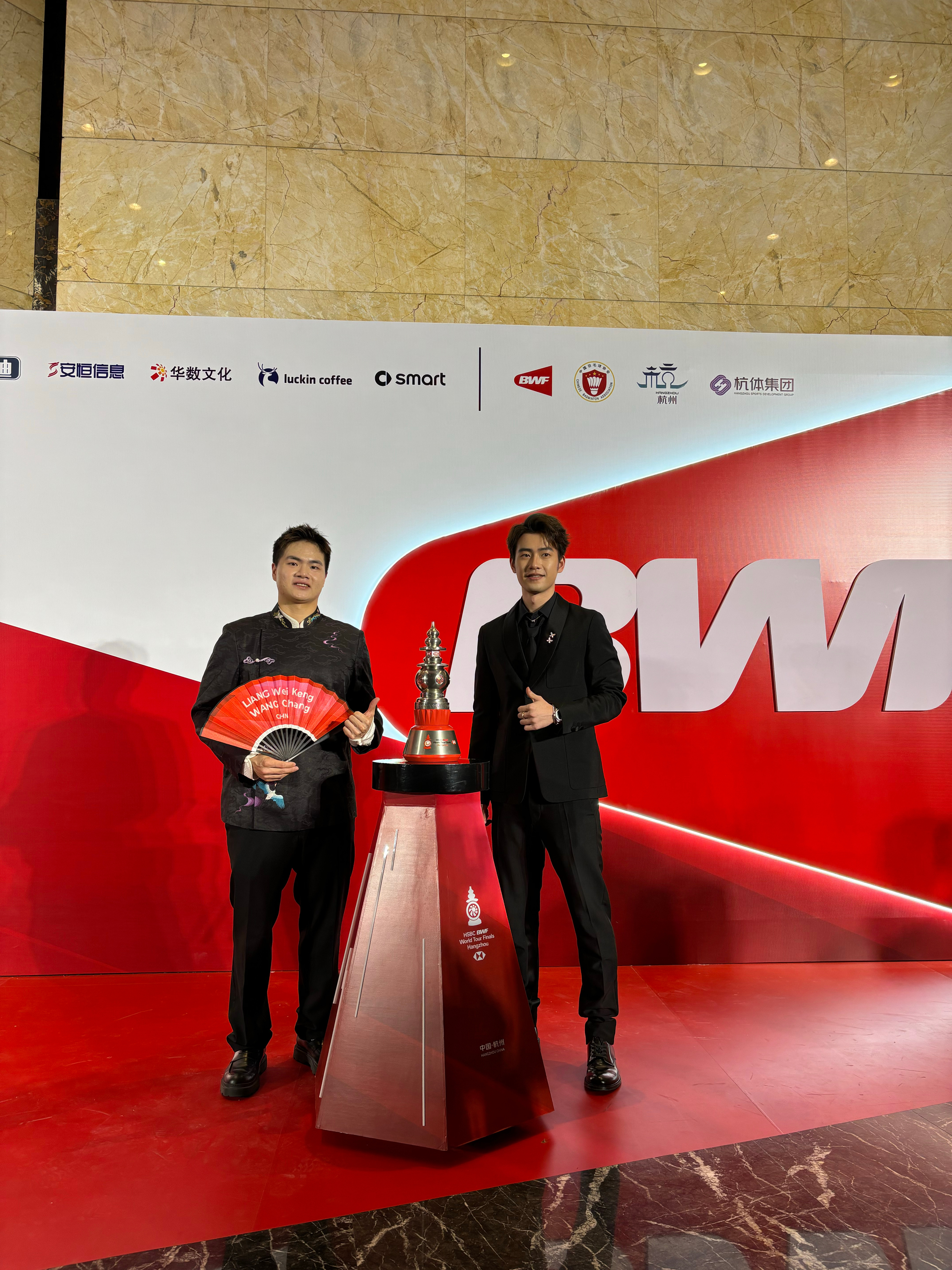 梁王亮相总决赛晚宴 晒图——“梁王驾到😜”今晚,羽联世界巡回赛总决赛将在杭州进行红毯秀与年度颁奖仪式,梁伟铿身穿新中式、王昶一袭西装帅气登场,梁王硬照太赞啦一起期待羽联总决赛颁奖典礼