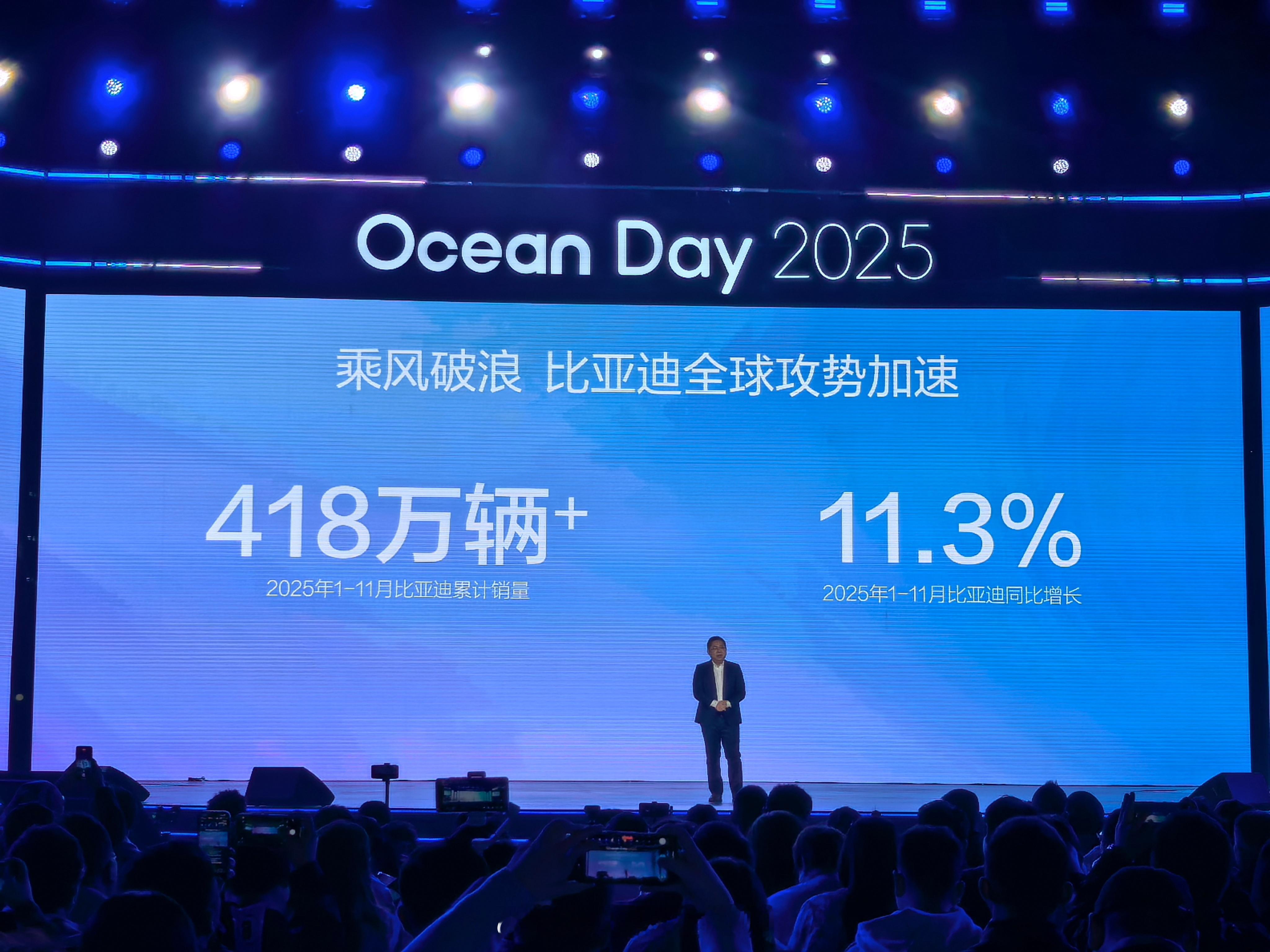 2025年1-11月份,比亚迪累计销量418万辆,同比增长11.3%。比亚迪新能源汽车
