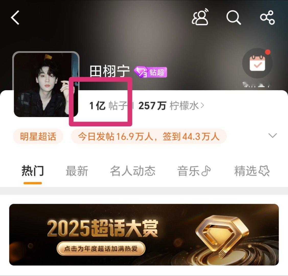 田栩宁超话发帖量破亿!微博几百万粉丝量干出几千万的势头,好🔥