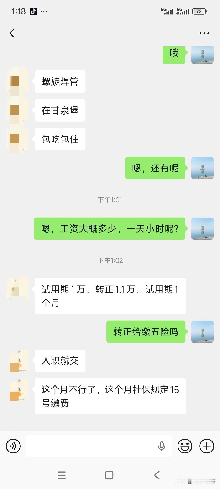 辞职报告已交,月底走人。我本意是干到年底走,老板意思是这个月底就走,因为2025年就剩这十几天了,2026年开始换新公司了!要重新签合同,再弄一遍资料,而且还要缴意外险,人家嫌麻烦,咱也能理解。 上礼拜就开始,我就在找新工作了,看了很多招工信息,有那么几家还不错。以我找工作的经验,每年年底好找活,因为很多人开始辞职回家过年了,这时候反而好找活,等年后乌泱乌泱的人跑出来了,狼多肉少,不好搞。所以这个月底走其实是个机会,找个活还能干一个月,年后可以接着干。我找了几家矿选维修的活,9500元,包吃住,缴三险,12小时,离我这里就几公里。 还找了个吐鲁番电厂巡检的活,8K包住,有餐补,五险一金,8小时。还有一家螺旋焊管的活,1万1一个月,包吃住,缴五险一金,试用期一个月,试用期1万元,这家厂要求详情面谈,感觉工作量会比较重。还有一家电厂专门烧焊的活,也是1万1包吃住,缴五险一金,但是要求现场试焊,再定工资,感觉是比较清闲的活,也是我最钟意的工作。 我还有一个计划,想去乌鲁木齐学氩电,学全氩小管的项目,学校我已经联系好了,5800元学一个月,包住,自己买着吃,高压证我有,就缺高压项目的章子,技术学到手,出来600一天打底,不愁没工作。 想法就这么多,具体看情况,人无远虑必有近忧,逆水行舟,不进则退。想想自己马上40岁了!保险也没有,以后年龄大了谁要? 现在工资也不高,还有三个孩子,上大学了以后,光生活费一月都要几大千,每每想到这些,我就焦虑的不行。 而且这几年工作越来越难找,前几年工地多,哪都能挣钱,现在变天了!全都在卷工厂,一个工作岗位几个人抢,不卷怎么办?