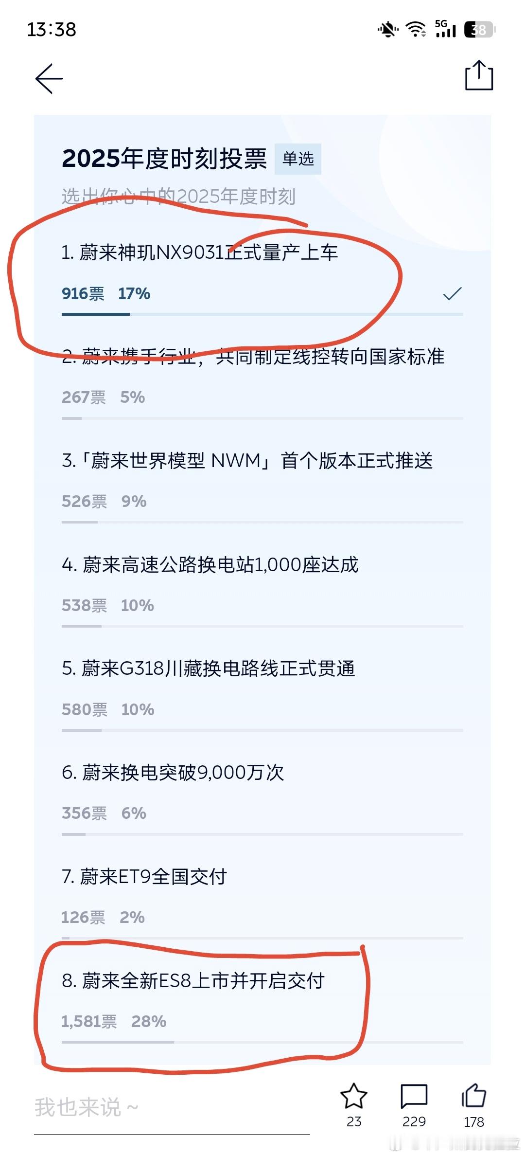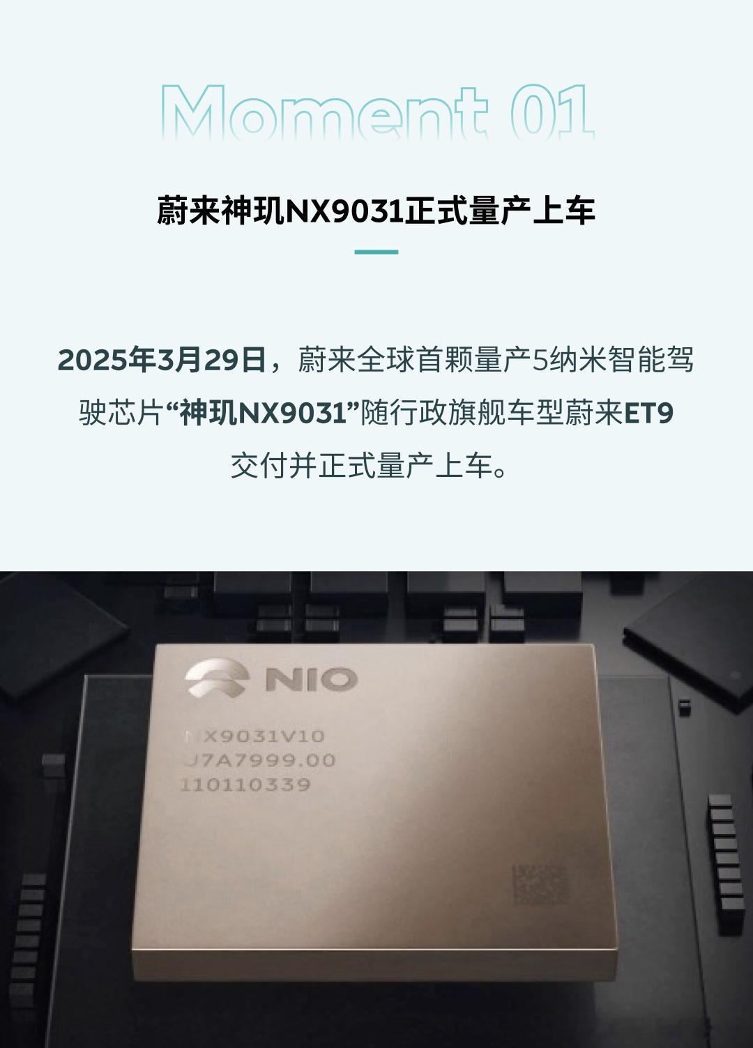 “MOMENT OF THE YEAR”NIO Life 的今年投票其中全新 ES8 上市并交付是目前投票区最高选项我个人投给了神玑 NX9031 芯片的量产上车作为国内目前上车量产为数不多的车规级 5nm 芯片,9031 在量产车机上将非辅助驾驶以外的智能化也同样做的非常非常优秀(补一下 这芯片不仅支持辅助驾驶,还有很多智能化的功能是依赖 9031 完成的)感兴趣可以去看看大v聊车