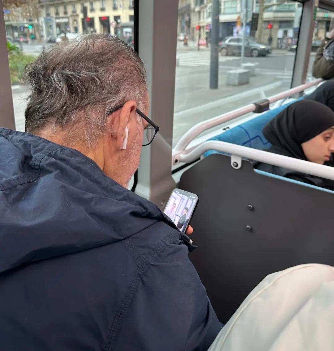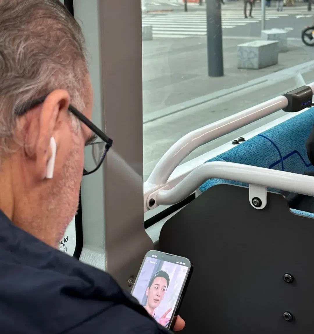 短剧已经火到法国了吗? 网友无意中发现公交车前座的法国老爷爷一直在看短剧,还是带法语字幕的那种!努力辨认了一下是中国短剧走向海外了,哈哈哈!