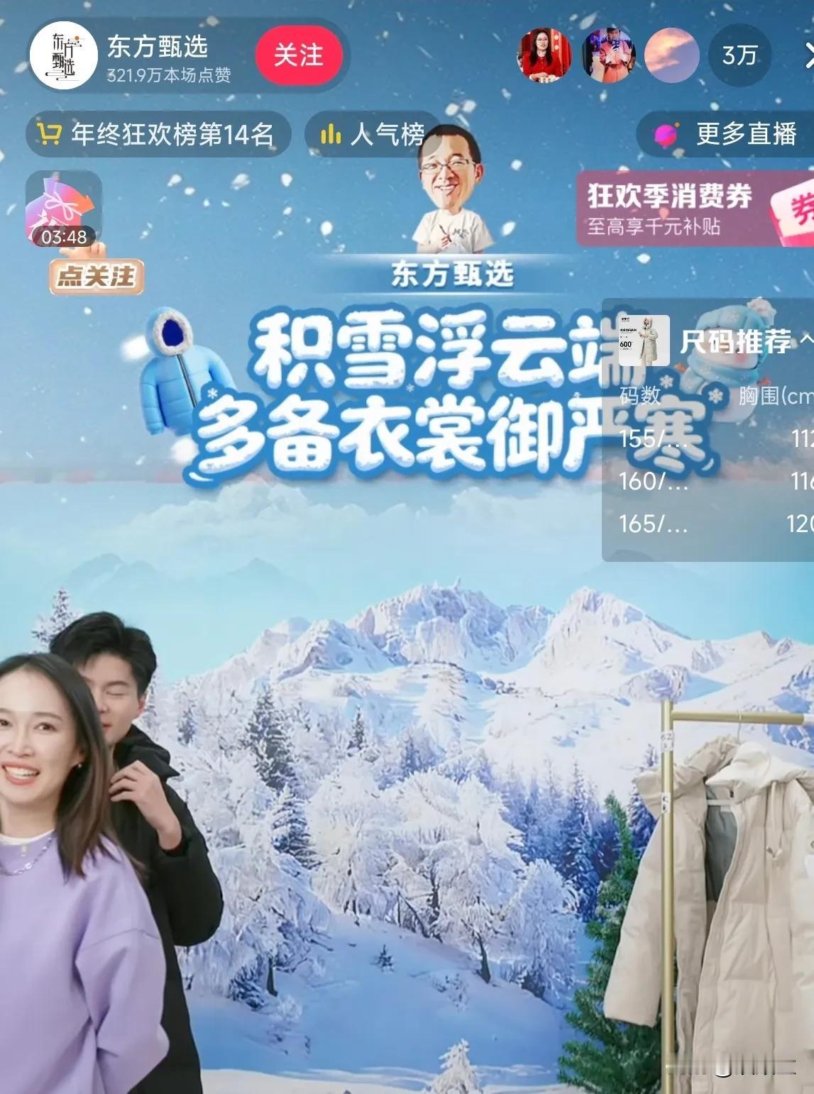 俞敏洪这流量可以啊! 今晚,他现身东方甄选直播间,卖羽绒服,当时的人数在3万左右! 俞敏洪全程也非常的配合,中规中矩的卖货,离开的时候,还送给主播一个企鹅作为礼物!一个老板能够把姿态做到如此,貌似还是可以的! 大家在挑剔的同时,回头想想,自己遇到的老板是否强过俞敏洪呢?
