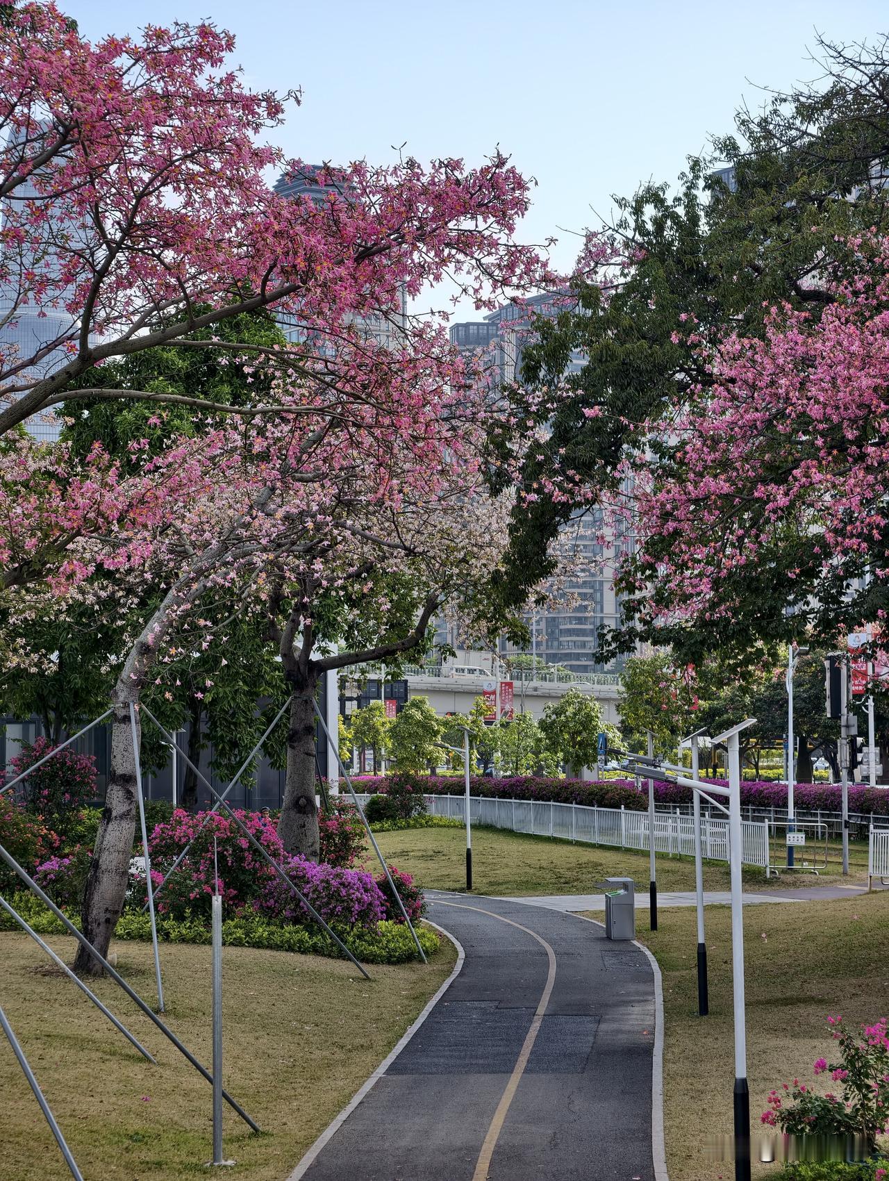 小径深处,一树繁花。 冬日的春。 和「紫荆花」长得像孪生姐妹的「红花羊蹄甲」。