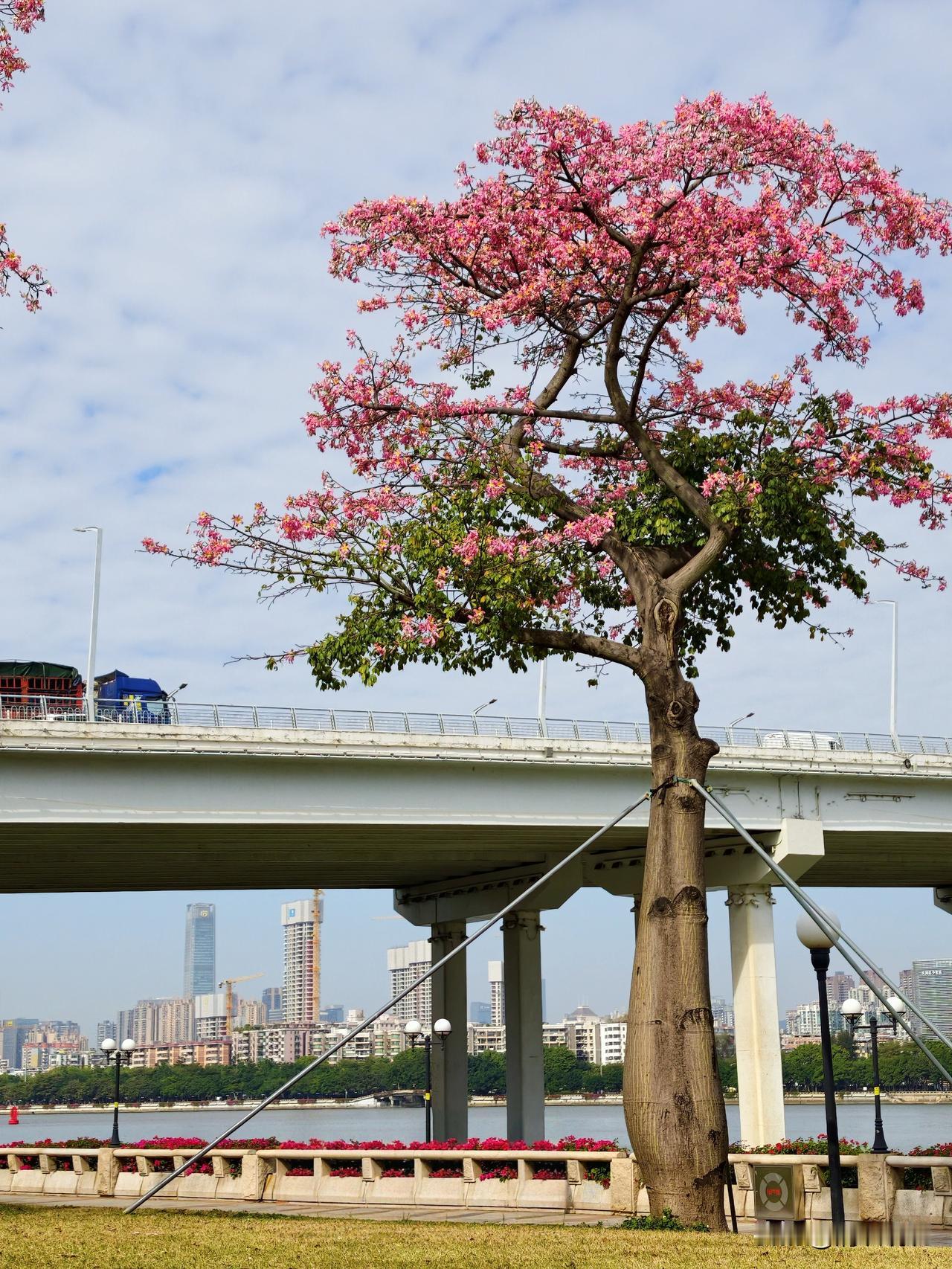 冬日未见严寒,却见一树繁花。 花树下。跑步。 生活如此美好。