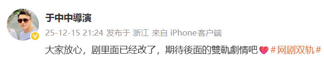 双轨导演辟谣使用原著大结局 导演已经解释啦,我还是静静等待这个双轨后续有什样的精彩剧情!网剧双轨