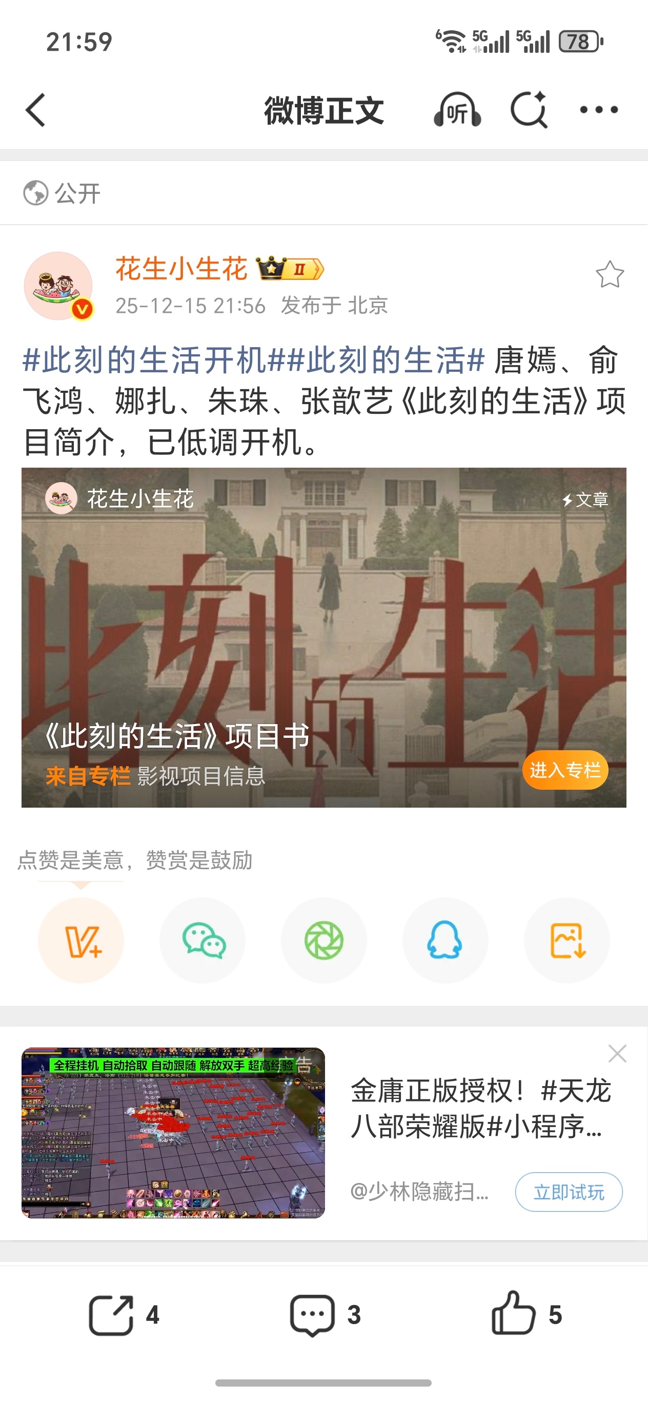 编剧一般般,此刻的生活已低调开机