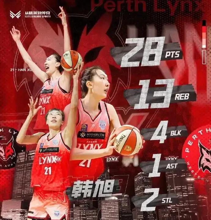 正负值+35。把对手的战术板直接打穿。 韩旭在澳大利亚联赛干了这件事:28分,13个篮板,4记火锅。 她率领珀斯野猫,把积分榜第一的队伍拆了。 不是险胜,是97比81的碾压。 这个207公分的内线,三分线外抬手就进。 对手包夹,她一步过掉补防的中锋。 你见过会跑快攻、能护框、还能拉空禁区的中锋吗? 她正在重新定义这个位置。 WNBL全明星阵容已为她预留席位。 球探报告更新:这位来自中国的巨人,脚步比后卫还轻。 多支WNBA球队的邀约,正在路上。 她让世界看到的,不仅是身高,更是中国篮球的 **天花板**。
