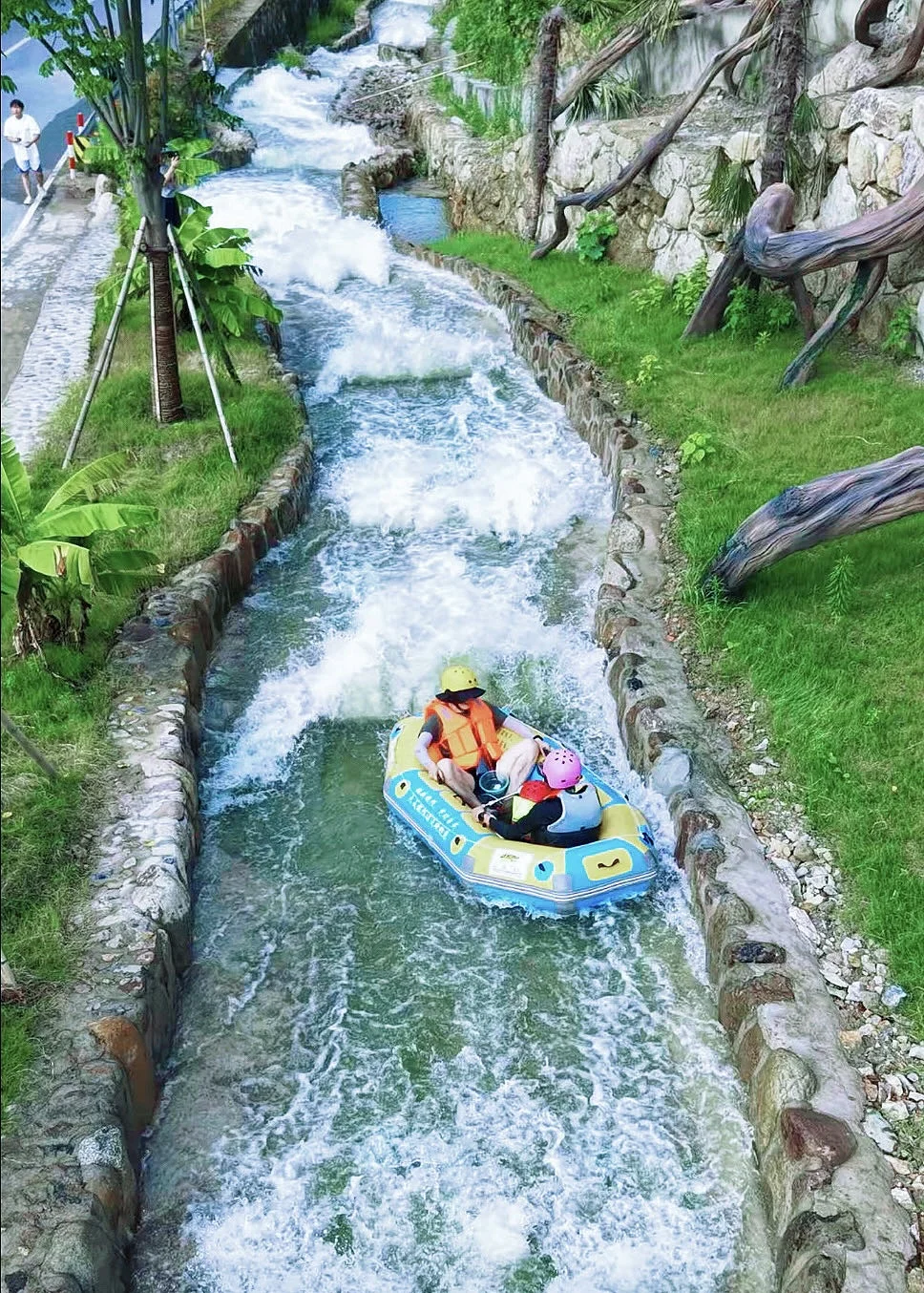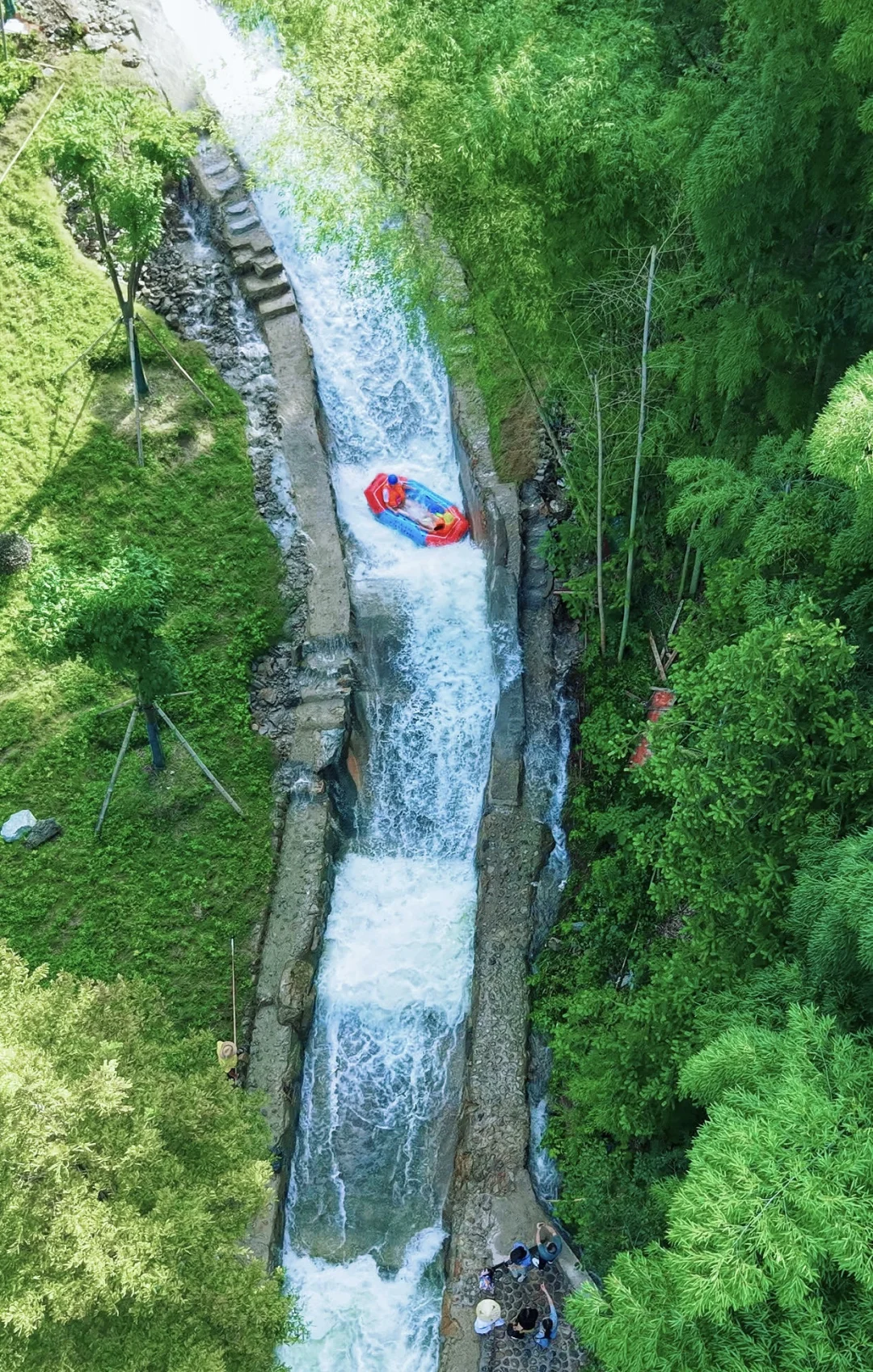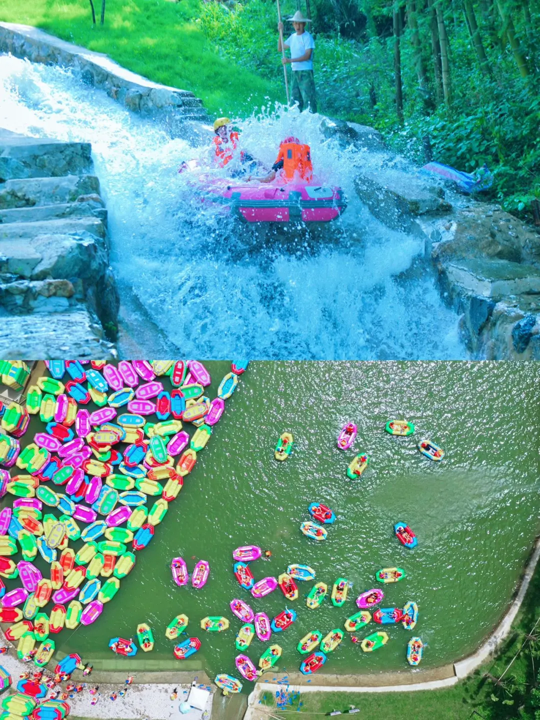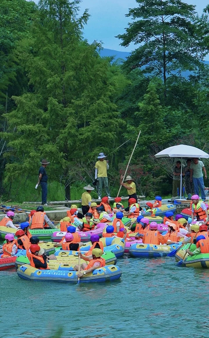 安吉又又又上漂流了❤❤\n双漂道、3米超宽河道、150米大落差\n每个数字都让人肾上腺激素biao升🤩\n但是,热爱冒险的你,\n怎么会错过它呢⁉走起💦\n\t\n九天JI\u00a0限漂流\n📍地址:湖州市安吉县杭垓镇磻溪村\n🕐检票时间:12–15点\n\t\n✅3米宽双漂道+150米大落差+2.8公里长\n被\u00a0700\u00a0多天打磨出来的漂流震撼到了!\n双漂道设计直接颠覆认知👍\n3\u00a0米超宽河道\u00a0+\u00a0迅猛水量💦砸下来的瞬间,\n直接在艇上开启旋转跳跃模式🥰\n2.8\u00a0公里的时空隧道里藏着\u00a0150\u00a0米大落差,\n漂流艇像山涧飞梭一样🎈🎈\n这里根本没有固定路线,\n每个转角都是未知的惊喜😇\n\t\n✅欣赏竹海风景+水上表演\n漂流全程都在\u00a0\"江南绿肺\"\u00a0里穿梭,\n两岸水杉高耸入云、竹影婆娑\n让人赏心悦目❤\n舞者在水面起舞,\n激流当伴奏,水花作舞台,\n演绎出一场场充满力量、动感与美感的现代舞蹈。\n这体验感直接拉满👏👏\n\t\n⚠Tips:\u200b\n穿速干衣!戴防滑鞋!手机一定要套好防水袋!\u200b\n建议带换洗衣物和毛巾,结束后有热水淋浴~\u200b\n\t\n长三角三小时直达,周末冲这个jue对不后悔‼\n