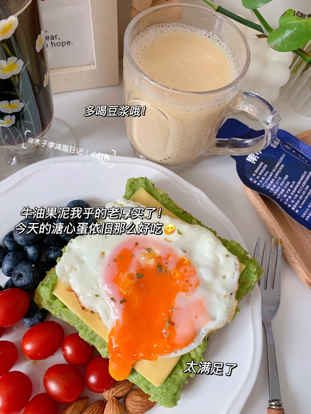 🍳早餐:每日一杯自律豆浆粉➕黑枸杞原浆➕牛油果煎蛋吐司➕蓝莓➕千禧果➕坚果仁➕黑咖啡