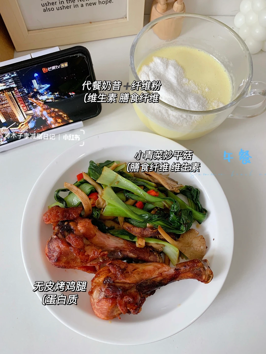 🥙午餐:青菜炒平菇➕代餐奶昔➕瓜尔豆纤维粉