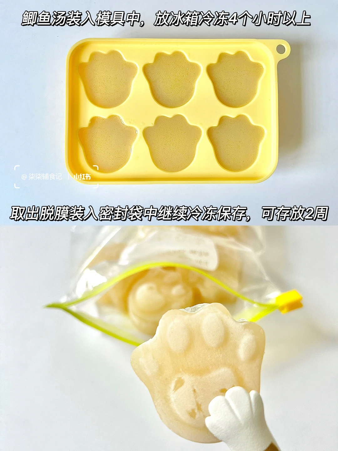 ▫️过滤好的汤汁装入模具中,冷冻4小时以上,取出放密封袋里继续冷冻保存2周内吃完