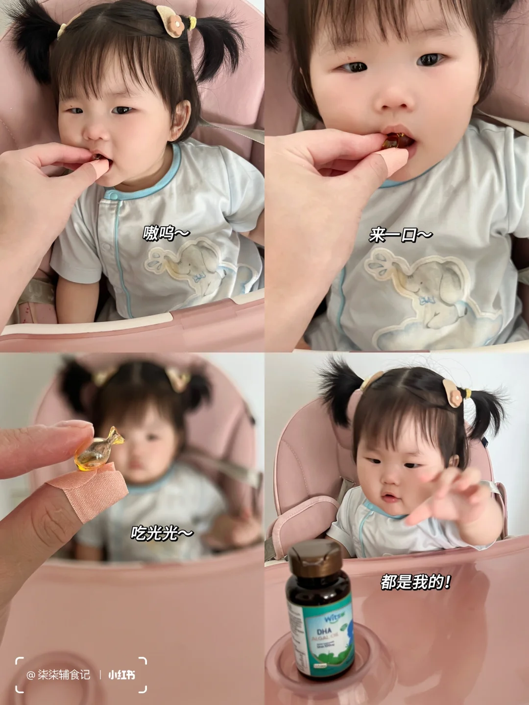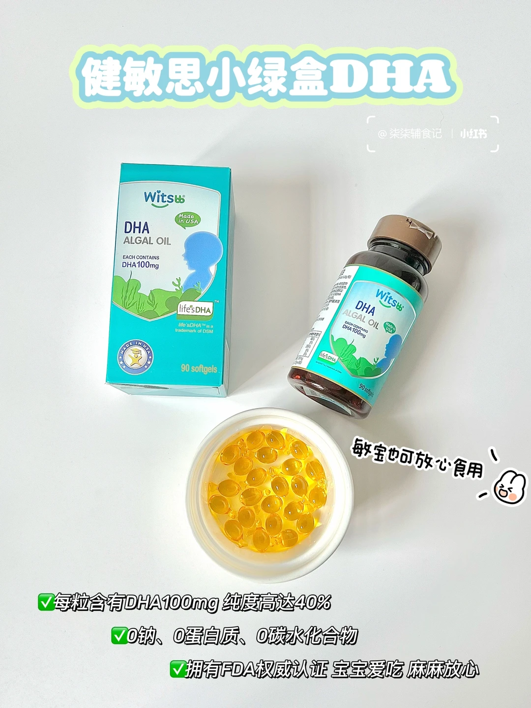 每日食补的同时也不要忘了给宝宝补充DHA,柒柒吃的是健敏思家的小绿盒DHA,配料表干净,每粒含有DHA100mg,纯度高达40%,没有什么腥味,柒柒很爱吃,lifes藻油几乎不含EPA,拥有FDA认证,宝宝爱吃,妈妈也放心,敏宝也可安心食用哦~大宝宝可以一整个直接放嘴里嚼一嚼就爆浆啦~