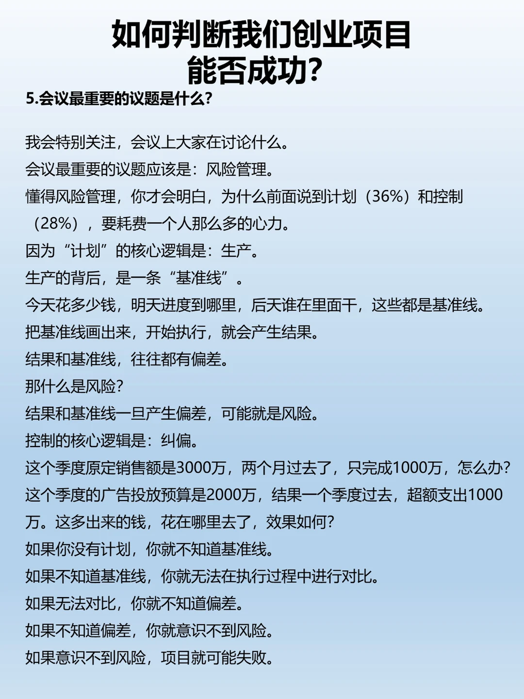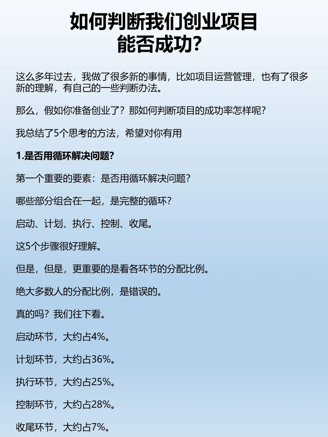 所以,这些是我自己做项目特别关注的东西。也是我判断项目能否成功的重要方法。