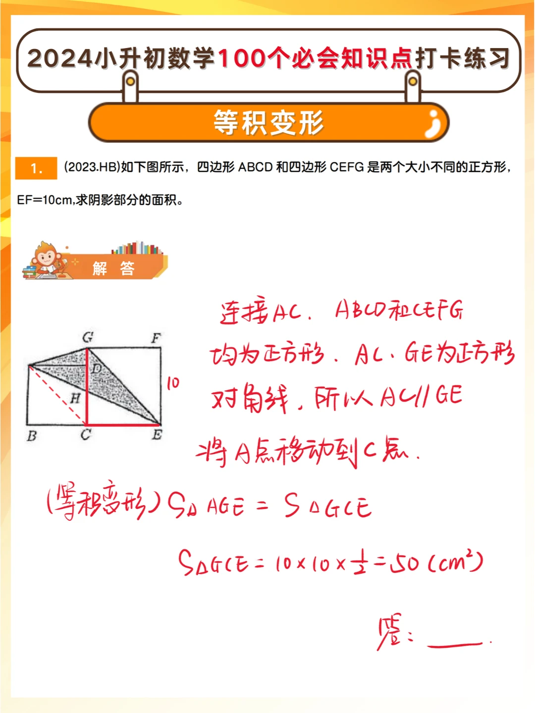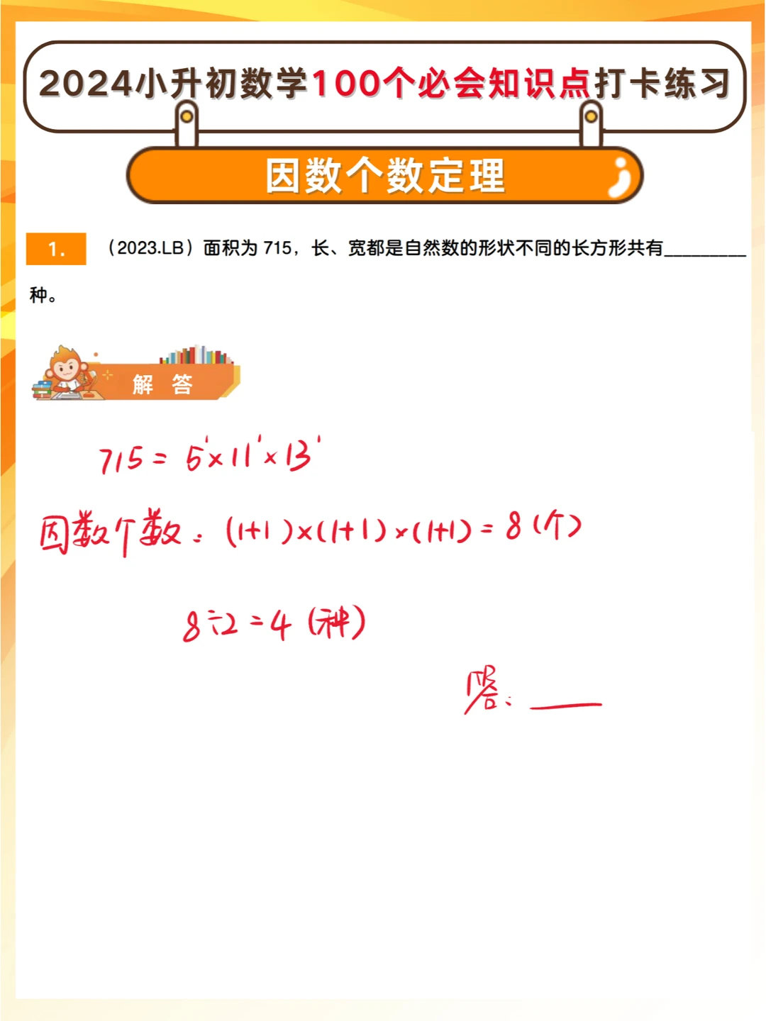 2024年重庆小升初数学100个必会知识点打卡练习(16-20) 1⃣6⃣位值原理 1⃣7⃣因数个数定理 1⃣8⃣因数和 1⃣9⃣等积变形 2⃣0⃣一半模型 由于是各板块知识点穿插打卡练习,这次由数论到几何,每个知识点配有两道不同难度的真题练习,你的正确率如何呢?