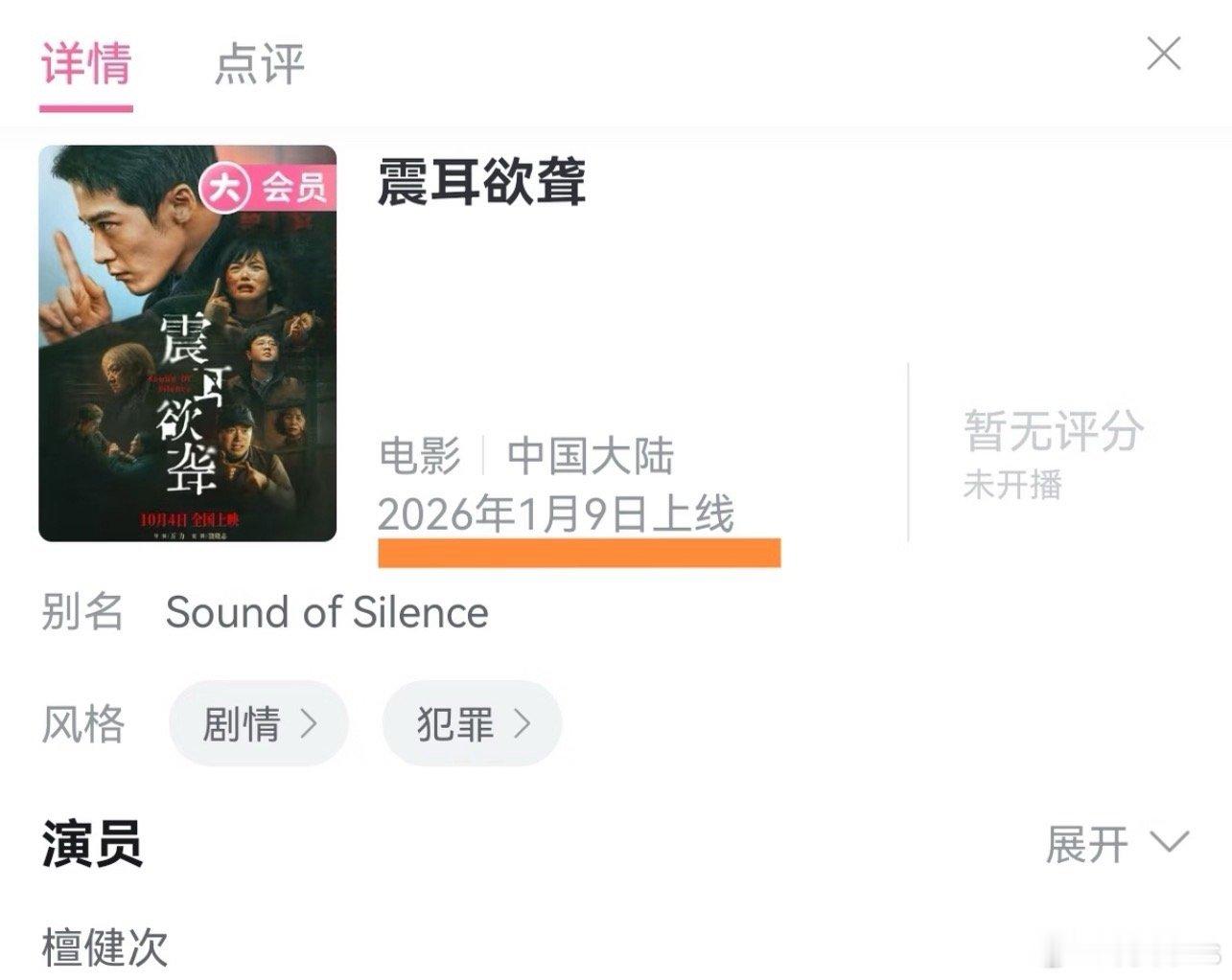 电影《震耳欲聋》预计2026.1.9上线流媒体