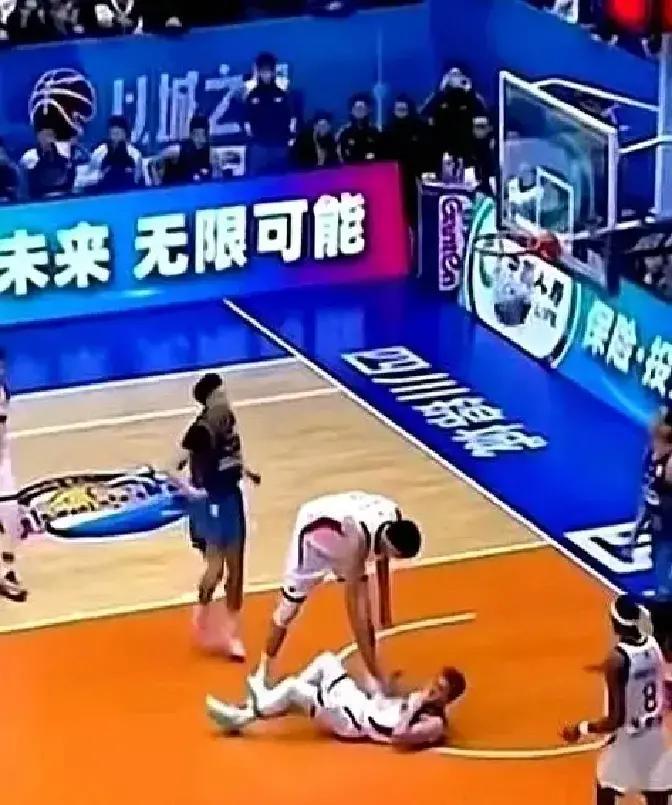 刚复出,一分钟不到,郭艾伦直挺挺躺地,脖子被四川1号一肘锁喉。那动作压根不是抢球,是冲人去的。全场瞬间安静,我心里骂了句脏。 球员拼命没错,但别把脏当硬。这一肘要是再重两厘米,职业生涯可能直接报销。赢球靠本事,不靠废人。希望大伦子没事,别让这种黑手毁了篮球。