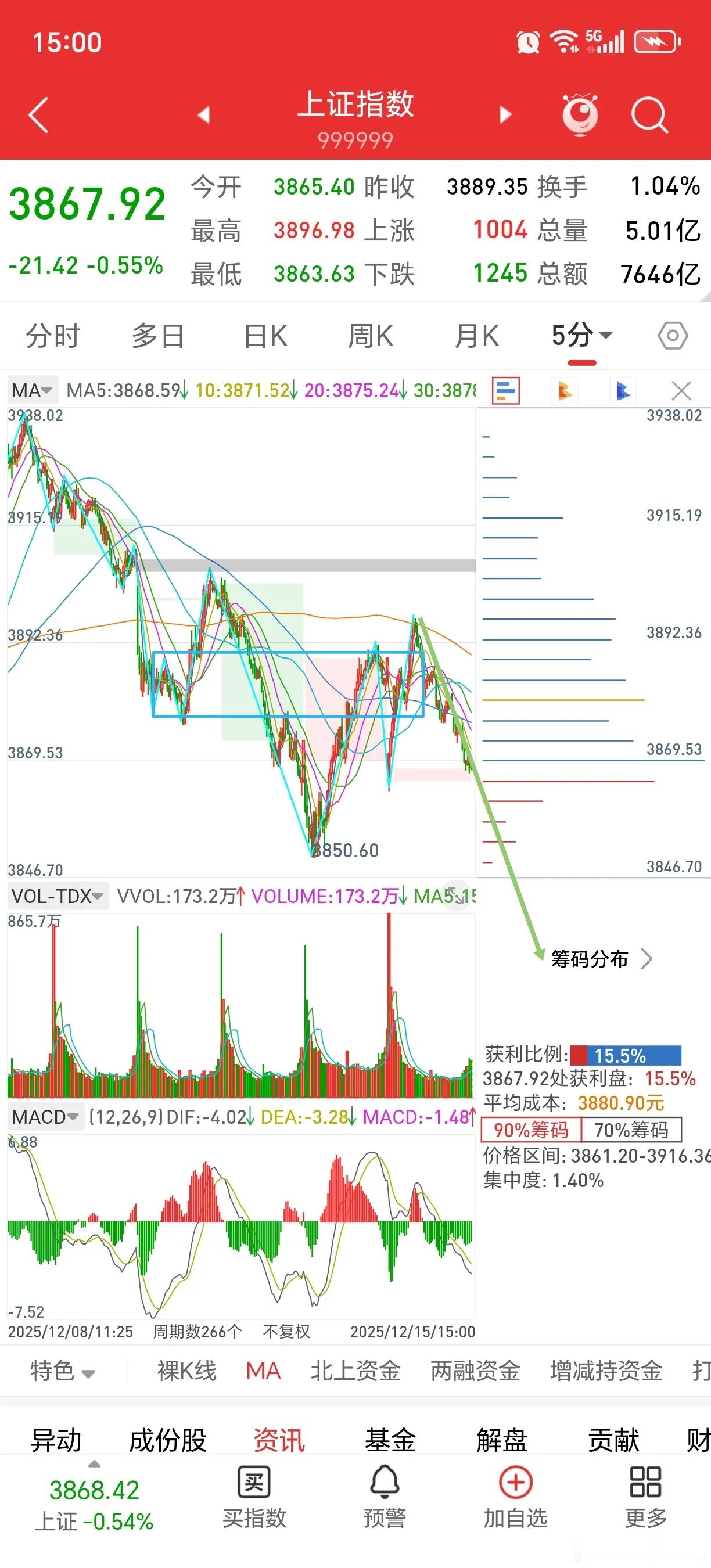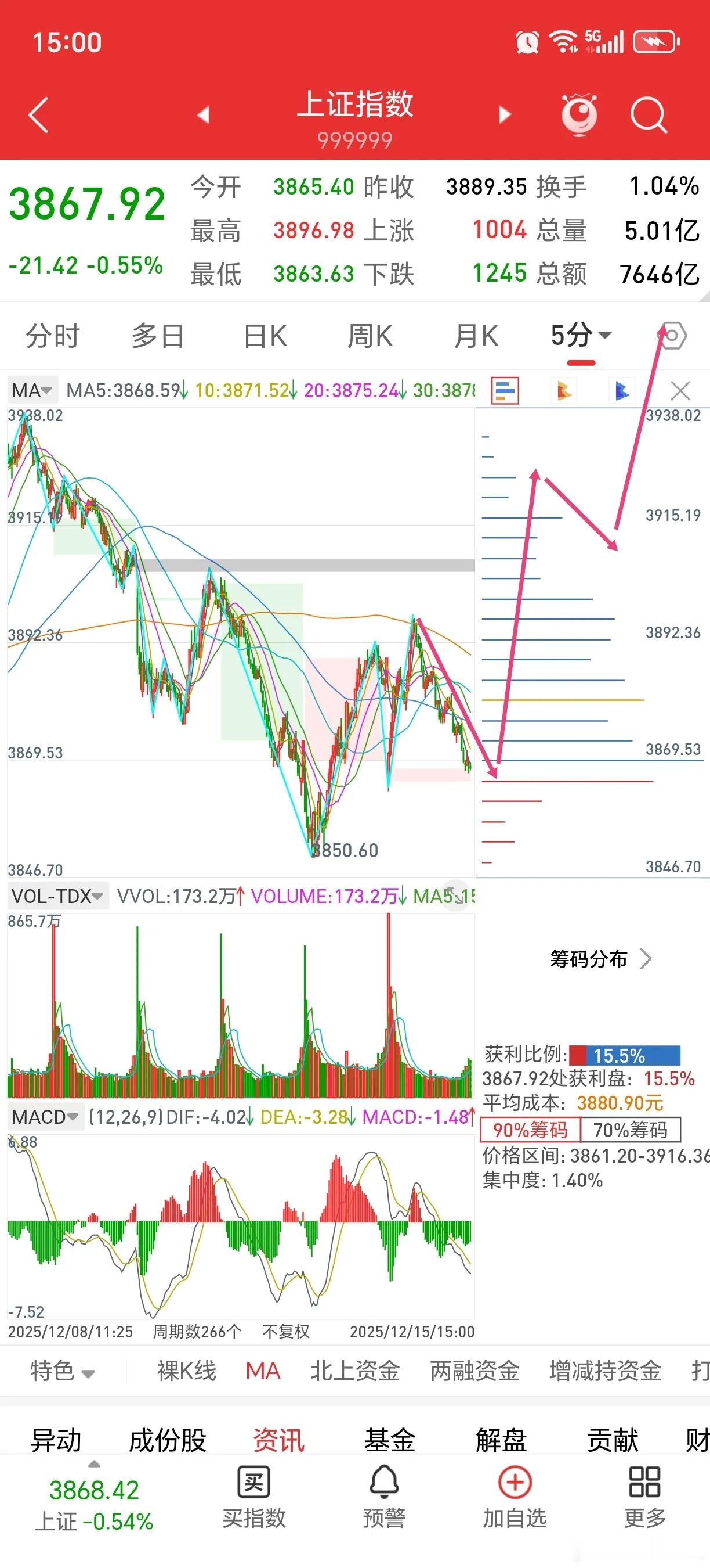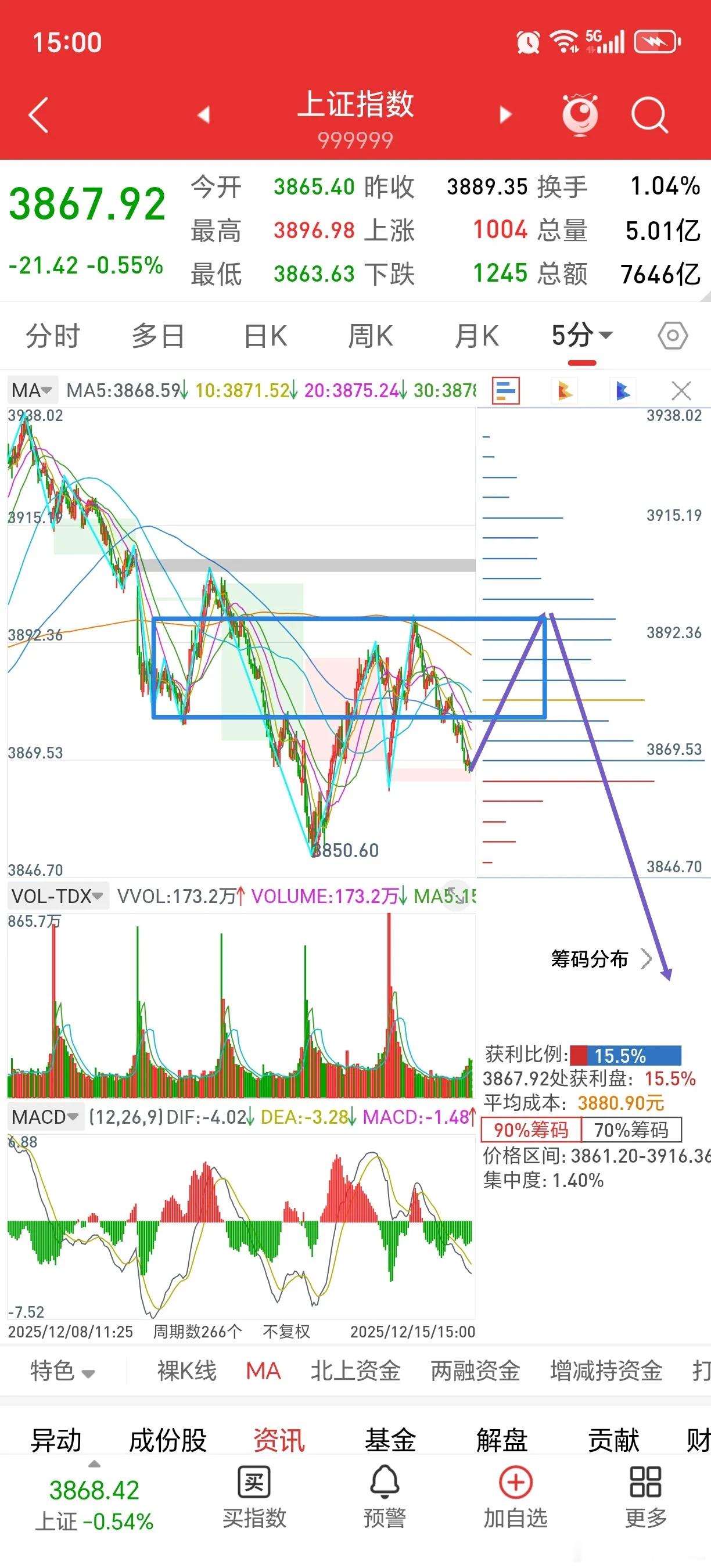 看图做风控 指数今天盘整下跌,早盘略有红盘,收盘下跌0.55%,两市量能1.77万亿。 明天的分类比较简单,要么反弹形成图一的一分上涨,要么震荡9笔扩展形成图二的5分下跌,要么就是接着今天的下跌出新低,图三就还是处于一分下跌中。 操作策略:每个人对后市的预期看法可能都会不同,因为对风险的承受能力不同,因此三张图可能出现的走势可以用仓位来管理自己预期的收益和能承担的风险!个人认为图一图二概率较大,因此仓位上我也有七层。那走出图三如何,等反弹在一分3卖或者下次一分上再仓位咯!当然也可以严格的执行止损,这样控制风险也是必要的!股市分析