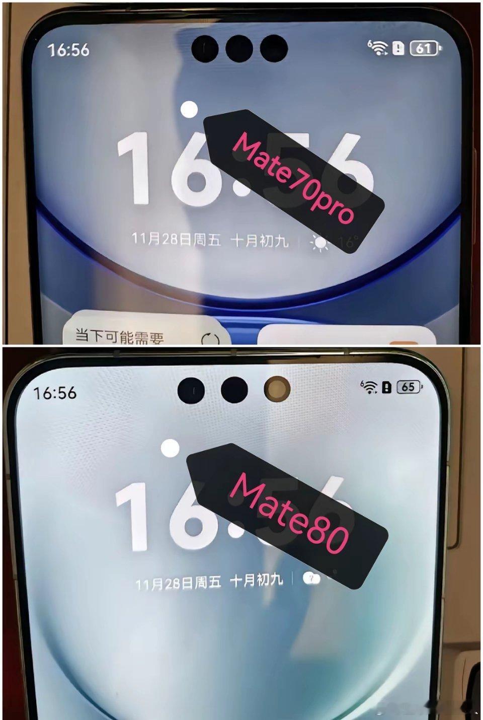 Mate系列的三挖孔设计,因为不好看一直被吐槽,没想到Mate80反其道而为之,硬生生把孔距拉大了,这是打算把“丑”贯彻到底啊!