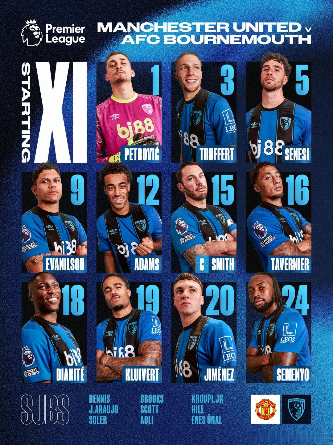 曼联vs伯恩茅斯 首发阵容⬇️ 04:00开赛!曼联首发:31-拉门斯、2-达洛特、7-芒特、8-费尔南德斯、10-库尼亚、15-约罗、16-阿玛德、18-卡塞米罗、19-姆伯莫、23-卢克·肖、26-海文伯恩茅斯首发:1-佩特洛维奇、3-特吕费尔、5-塞内西、9-埃瓦尔尼森、12-亚当斯、15-斯密斯、16-塔韦尼耶、18-迪亚基特、19-小克鲁伊维特、20-希门尼斯、24-塞梅尼奥英超联赛