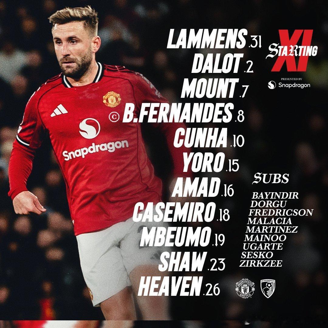 曼联vs伯恩茅斯首发阵容⬇️04:00开赛!曼联首发:31-拉门斯、2-达洛