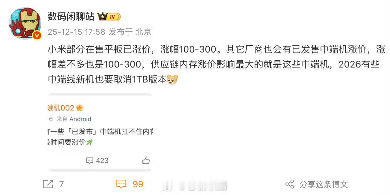 部分中端新机或取消1TB版本存储成本暴涨倒逼市场降温,中端机取消1TB版本是厂商的无奈取舍——毕竟内存价格飙升超80%,1TB配置的成本压力已超出中端机利润承受范围。