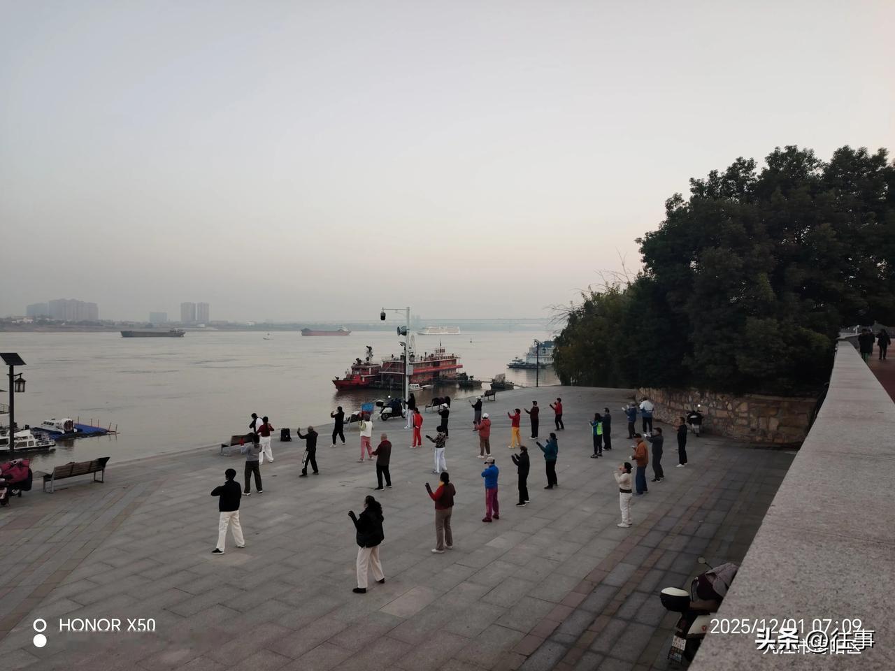 我的今日状态:🏝️旅行度假 我这里的天气:☀️晴天11月13日长江岸边晨练打卡