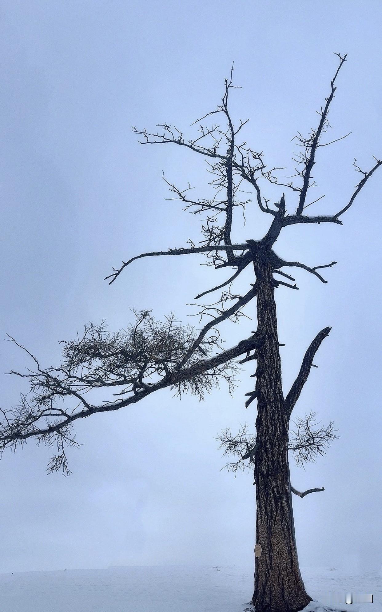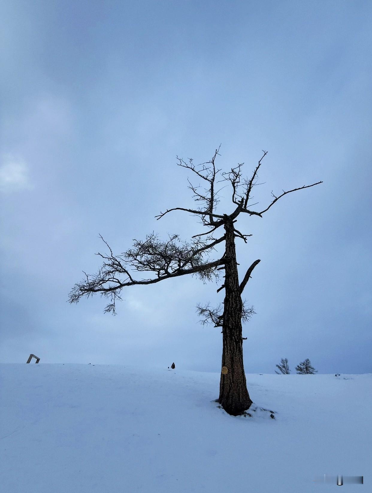 分享手机里随手拍的风景照片雪中独立树,寒意入诗行。