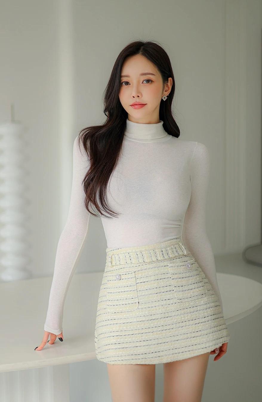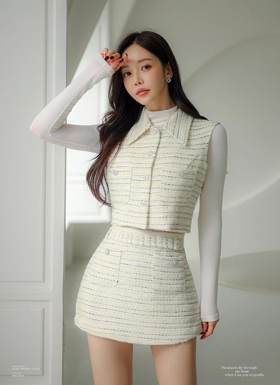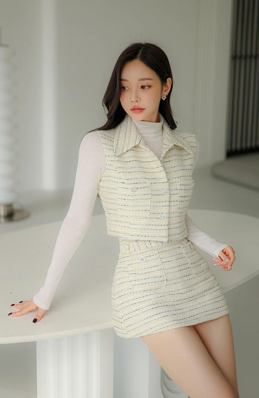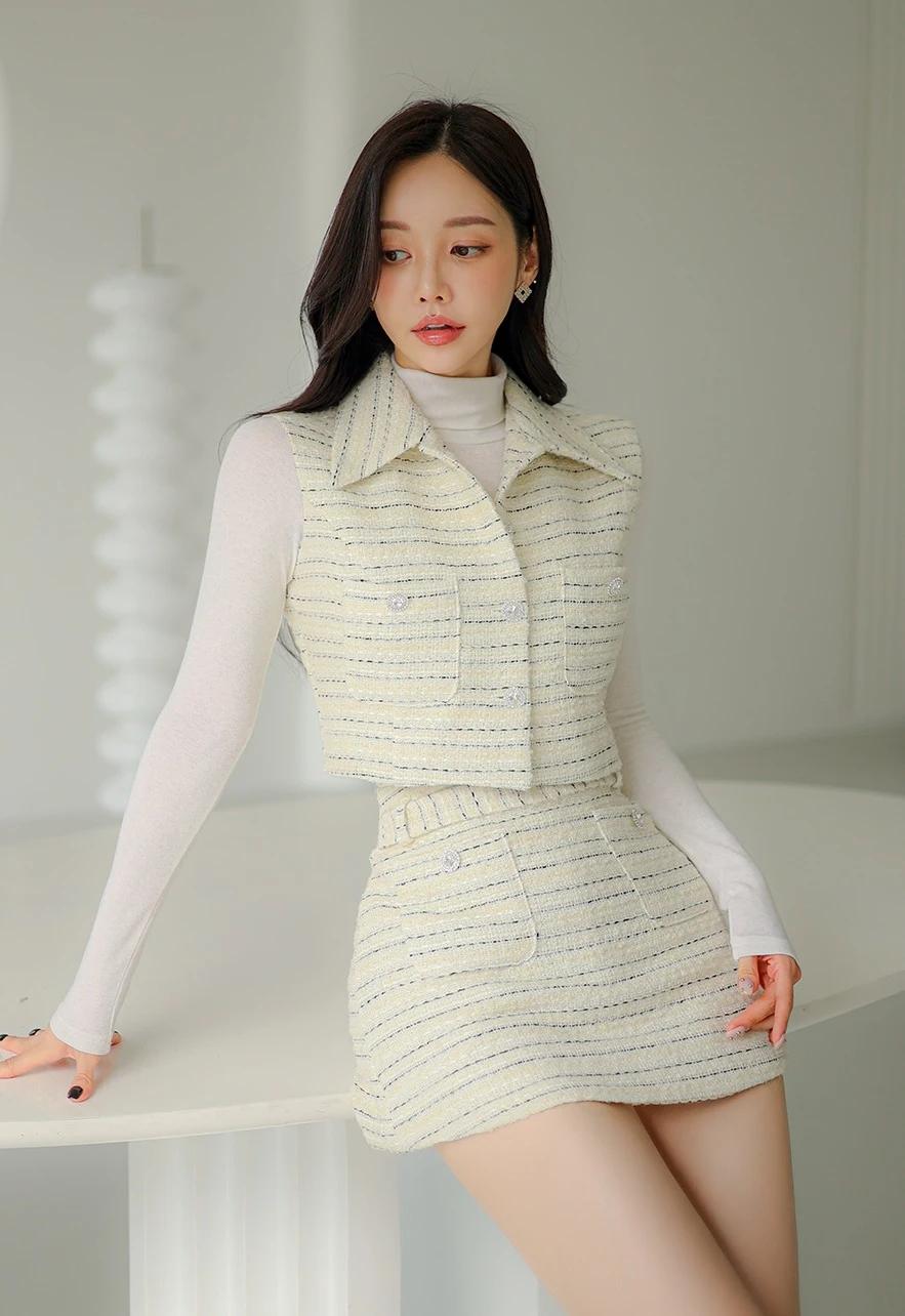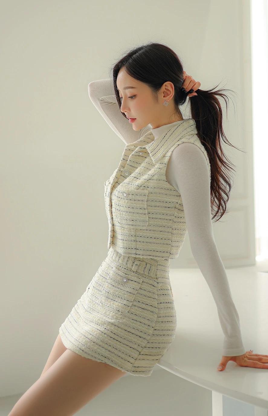 孙允珠-穿着时尚的条纹连衣裙,优雅地摆姿势。分享今日暖心的话 #每日穿搭