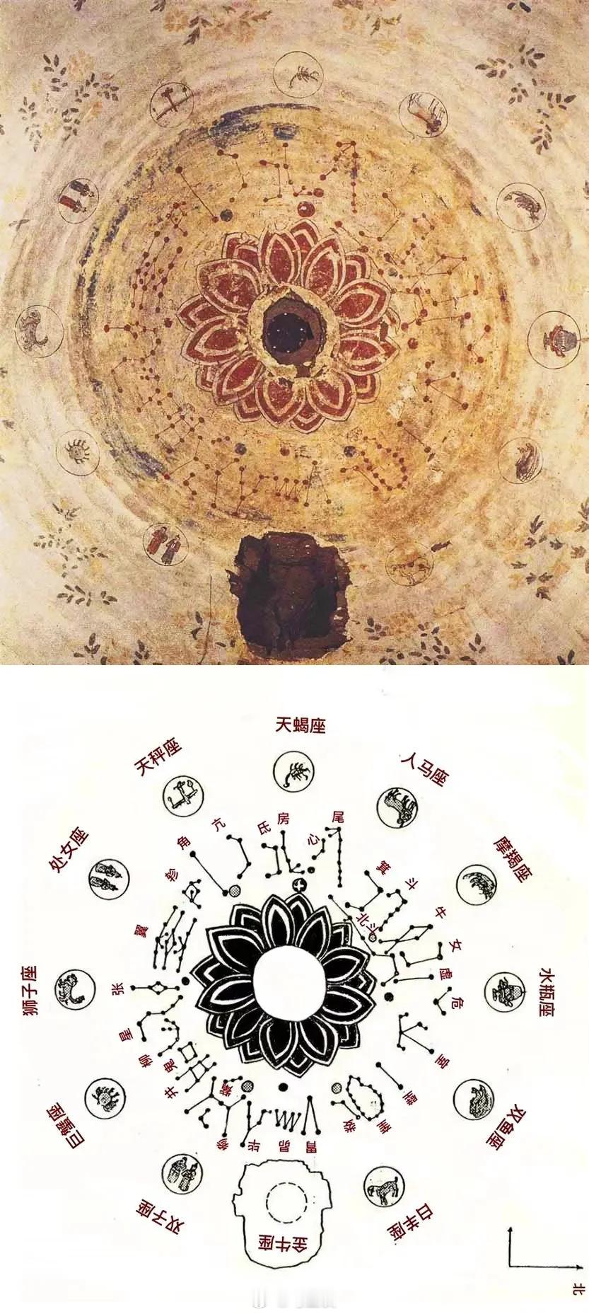 辽代中原古墓壁画有十二星座。张世卿墓葬群天文图。1972年,河北发现了一个辽代古墓群。考古专家在当地的挖掘工作,从1972年开始,直到1993年才告一段落。古墓的具体位置在河北省张家口市河子乡下八里村。这个地方有十几座辽代的张氏家族古墓。其中,最有名气的是张世卿墓。在这20多年里,考古工作者对张世卿墓为代表的 10余座辽代墓葬群,进行保护性挖掘,一共出土了800多件珍贵文物。此外,专家还发现了360平米的壁画。其中,最令考古专家惊讶的是,墓室的上方,居然有一幅天文图,上面的图案,跟十二星座一一对应。现在常说的十二星座,发源于古巴比伦。古巴比伦一开始设计的十二宫,并没有直接流传到中国。这个划分方式被传到了希腊,因为入乡随俗的缘故,古巴比伦划分的十二宫,在希腊境内跟神话结合到了一起,逐渐演变成了后人常说的十二星座,相传隋唐时期传入我国。
