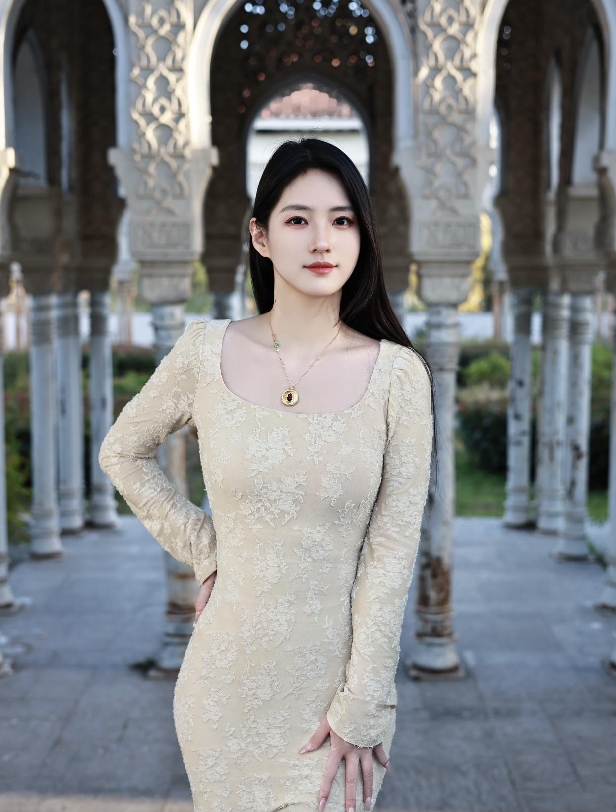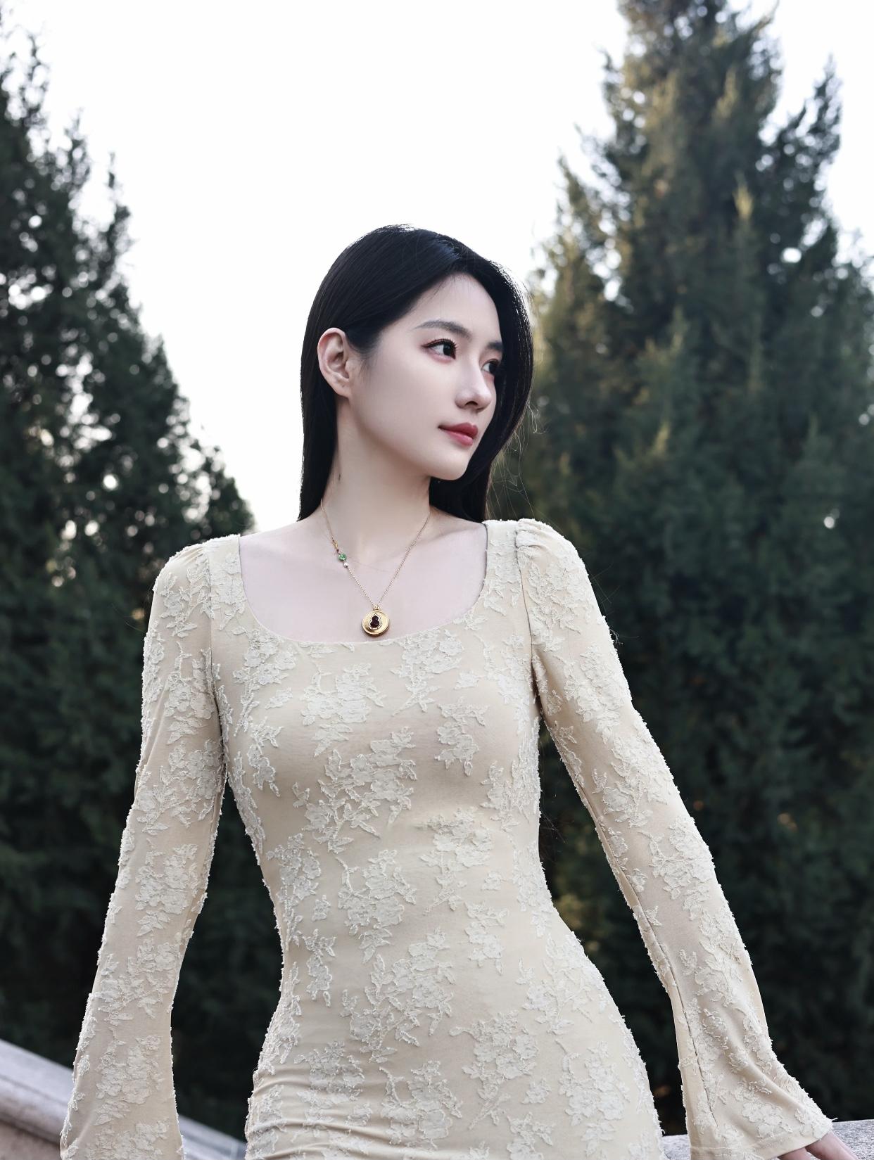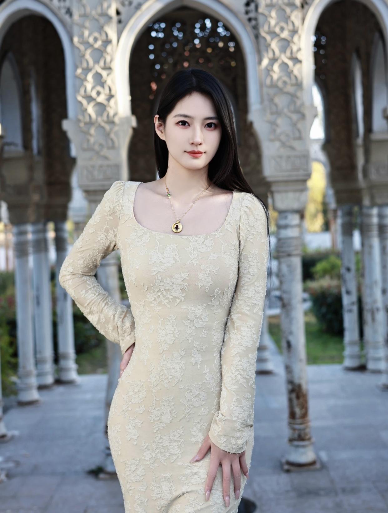 高端大气上档次的穿搭优雅蕾丝长裙,漫步在古典庭院中,尽显温柔与浪漫。
