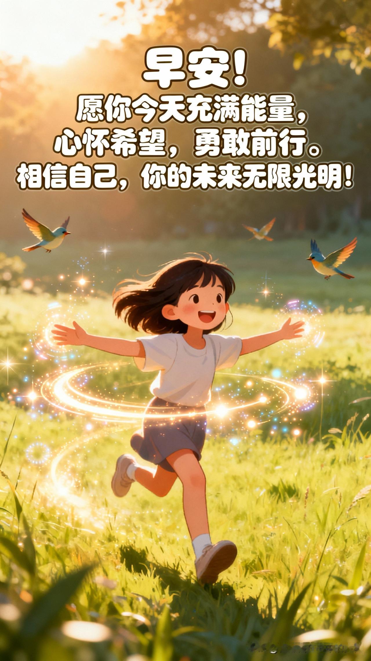 当然可以!以下是一篇充满激励和正能量的早安劝志心,希望能为你带来一天的动力。 生活励志早安 早晨打卡祝福语 早安!新的一天,新的希望 清晨的第一缕阳光洒在大地上,唤醒了沉睡的世界,也迎来了属于你的崭新一天。每一个清晨,都是一个全新的开始,是你追逐梦想、实现目标的宝贵时刻。 今天,无论遇到什么困难或挑战,都请记住:你拥有无限的潜力和力量。困难只是成长的催化剂,挫折只是成功的垫脚石。只要你坚持不懈,勇敢面对,就没有什么能够阻挡你前行的步伐。 在这个美好的早晨,给自己定下一个小目标,无论是完成一项任务,还是迈出一小步,都值得为自己喝彩。相信自己,保持积极的心态,用努力和热情去迎接每一个挑战。 人生就像一场旅程,重要的不是终点,而是沿途的风景和你在路上的成长。每一天都是一个新的机会,让我们用微笑迎接,用勇气面对,用坚持追逐梦想。 早安!愿你今天充满能量,心怀希望,勇敢前行。相信自己,你的未来无限光明! 希望这篇心语能为你带来一份力量和温暖!祝你拥有美好的一天!