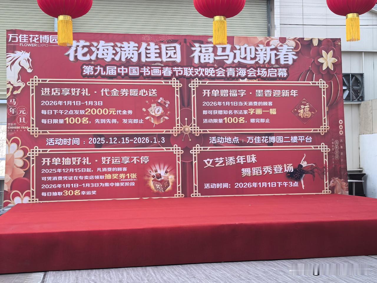 爆了!西宁万佳花博园新春赏花会刷屏了! 不止是花海,更是书画春晚青海分会场!即日起至元月三日,二楼活动燃爆全场——领代金券、开单赠手写福字、抽惊喜好礼!文艺演出每天不重样,浓浓年味扑面而来! 昨天巨幅广告已亮相,元旦三天最疯狂!赏花+艺术+福利三连击,西宁人的开年仪式感在这儿拉满!速冲!就在生物园区一家亲店隔壁。 西宁赏花 万佳花博园 西宁逛花市 西宁花卉市场