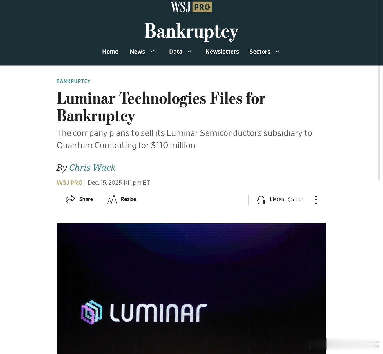 激光雷达公司 Luminar 正式申请破产保护,此前曾是飞凡 R7 和沃尔沃车型的定点供应商,上个月沃尔沃宣布终止EX90和ES90供货合作,现金少和 5-10 亿美金负债、主要合作客户流失,今天这局面也不太意外,只是时间早跟晚的区别。激光雷达自动驾驶新能源汽车
