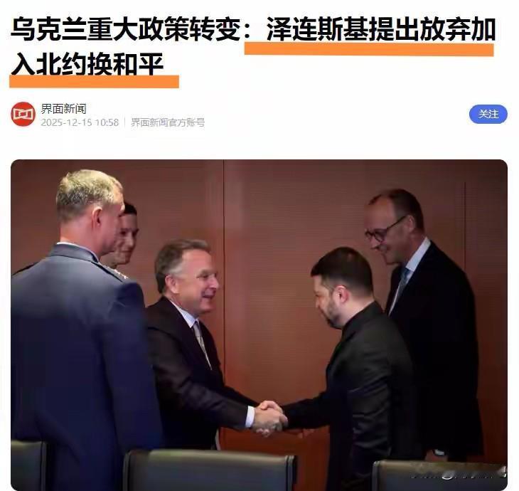 泽连斯基终于妥协了!乌克兰放弃加入北约。曾经高喊“战斗到最后一人”的总统终究还是低头了,咽下了这杯“苦酒”:四年战争,乌克兰以伤亡数百万人,逃亡近千万人,失去20%国土面积,连最初梦想的目标(加入北约)也失去了,这四年不但是白打了,而且还将国家从富裕打成了贫穷,从统一打成了分裂,得到的可能只是大国的空口承诺。对乌克兰来说,这实在有点可惜!可也没有任何办法,毕竟小国想与大国掰手腕,自己没有任何筹码,靠谁都靠不住,最终只能是“命苦”。