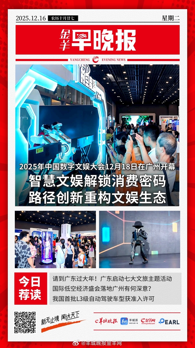 #金羊早晚报# 来这里与未来握个手!2025年中国数字文娱大会展览与嘉年华齐登场 请到广东过大年!广东启动七大文旅主题活动、三重惠民举措等你来 央视报道30天“速成工艺陈皮”,冒充“广东新会陈皮” 我国首批!L3级自动驾驶车型获准入许可 国际低空经济盛会落地广州,背后有哪三点深意? 广州将统一校服?“一校一品”或“全市统一”都有理,关键是“谁”该做决策? 杭州小米交付中心发生车祸,小米内部人士:当时处于人驾状态,事故还在调查中 《落凡尘》越南定档,继《哪吒之魔童降世》后国漫再次登陆该国 亚运会三金得主举报被领导索要奖金,官方回应 女子家门口遇害案凶手庭审冷笑 我国已进入拉尼娜状态,今冬气候如何?国家气候中心解释 国防部:坚决阻击日本军国主义幽灵复活 外交部发布对岩崎茂采取反制措施的决定 韩国特检组发布最终调查结果,对尹锡悦等24人提起诉讼 更多精彩报道,请扫码关注羊晚全媒体报道!#小米交付中心事故当时处于人驾状态##小米内部人士回应交付中心发生车祸##27岁女子家门口遇害案将二次开庭##4斤黄金凤冠被毁业内称重做20万起#