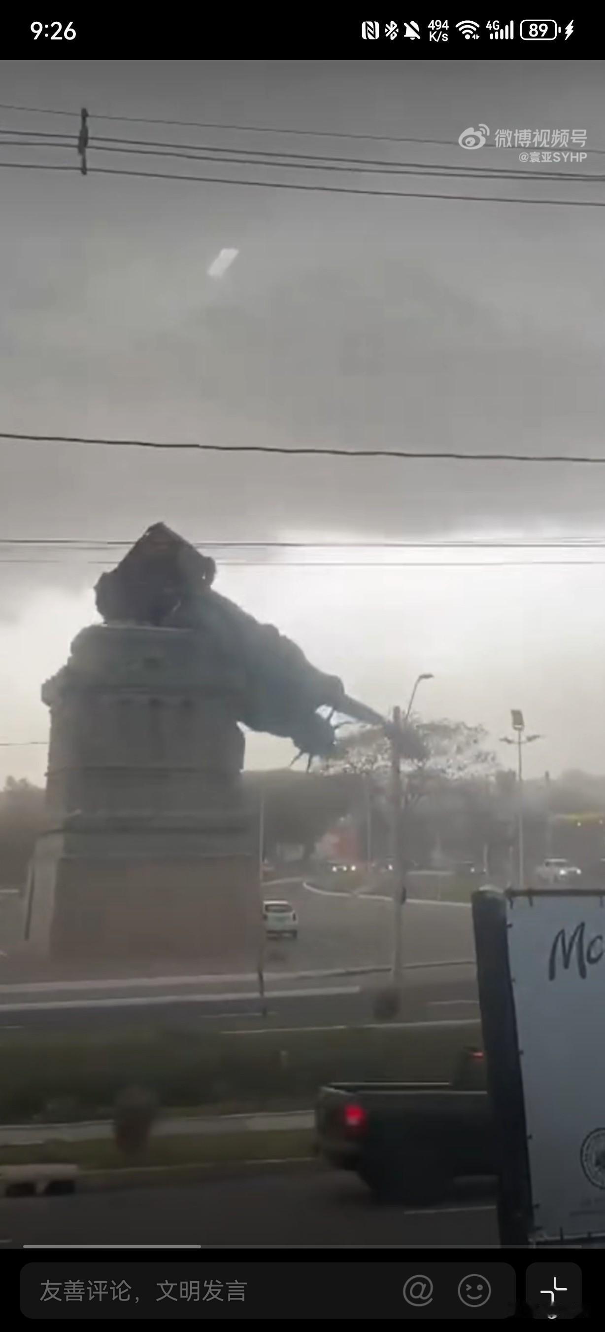 自由女神复制品强风倒塌…2025年12月15日,巴西南里奥格兰德州阿雷格里港瓜伊巴区的一座自由女神像复制品在强风侵袭中倒塌。这座复制品始建于20世纪初,与共济会有着关联,矗立多年来成为当地一处标志性景观。