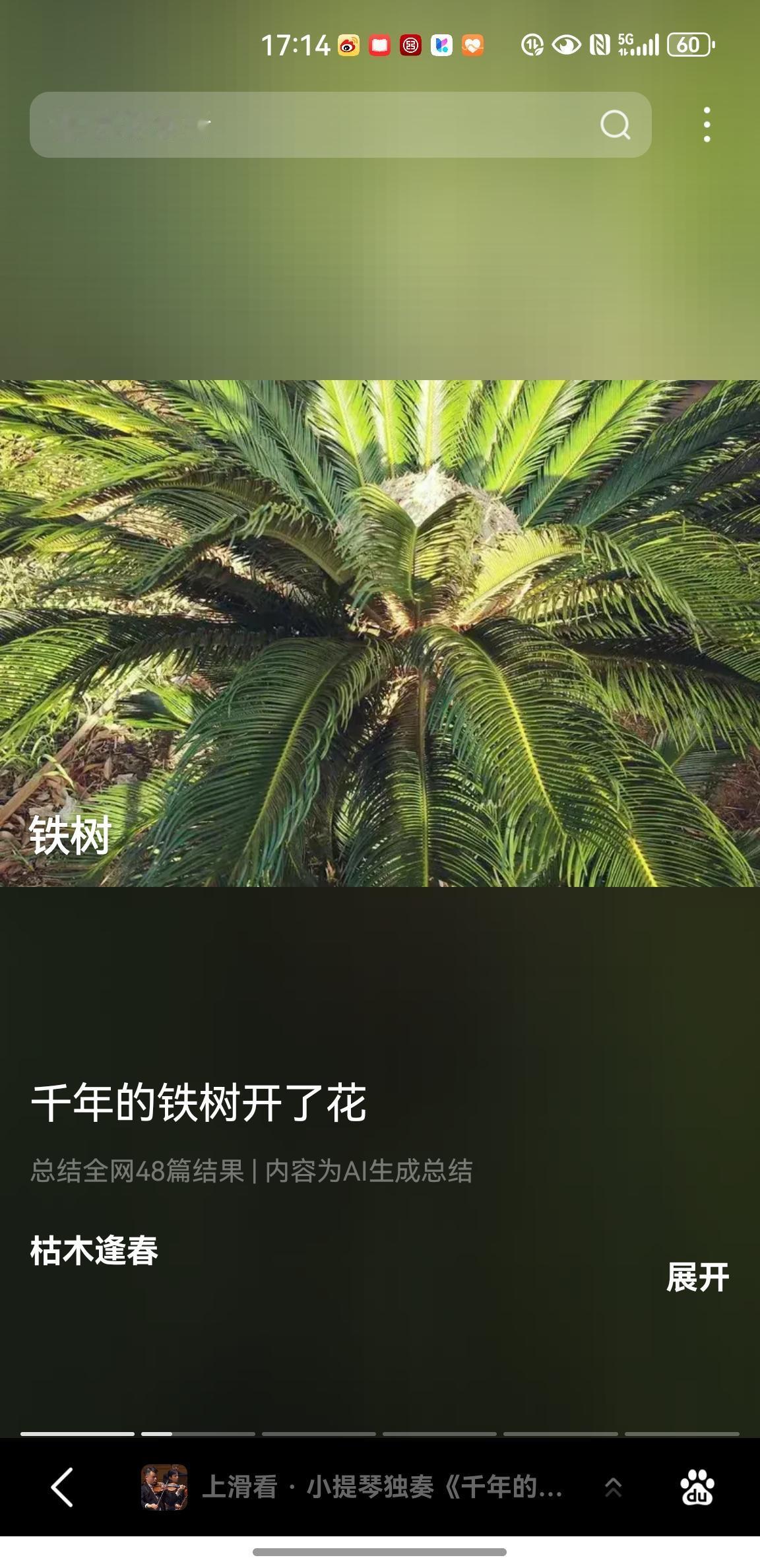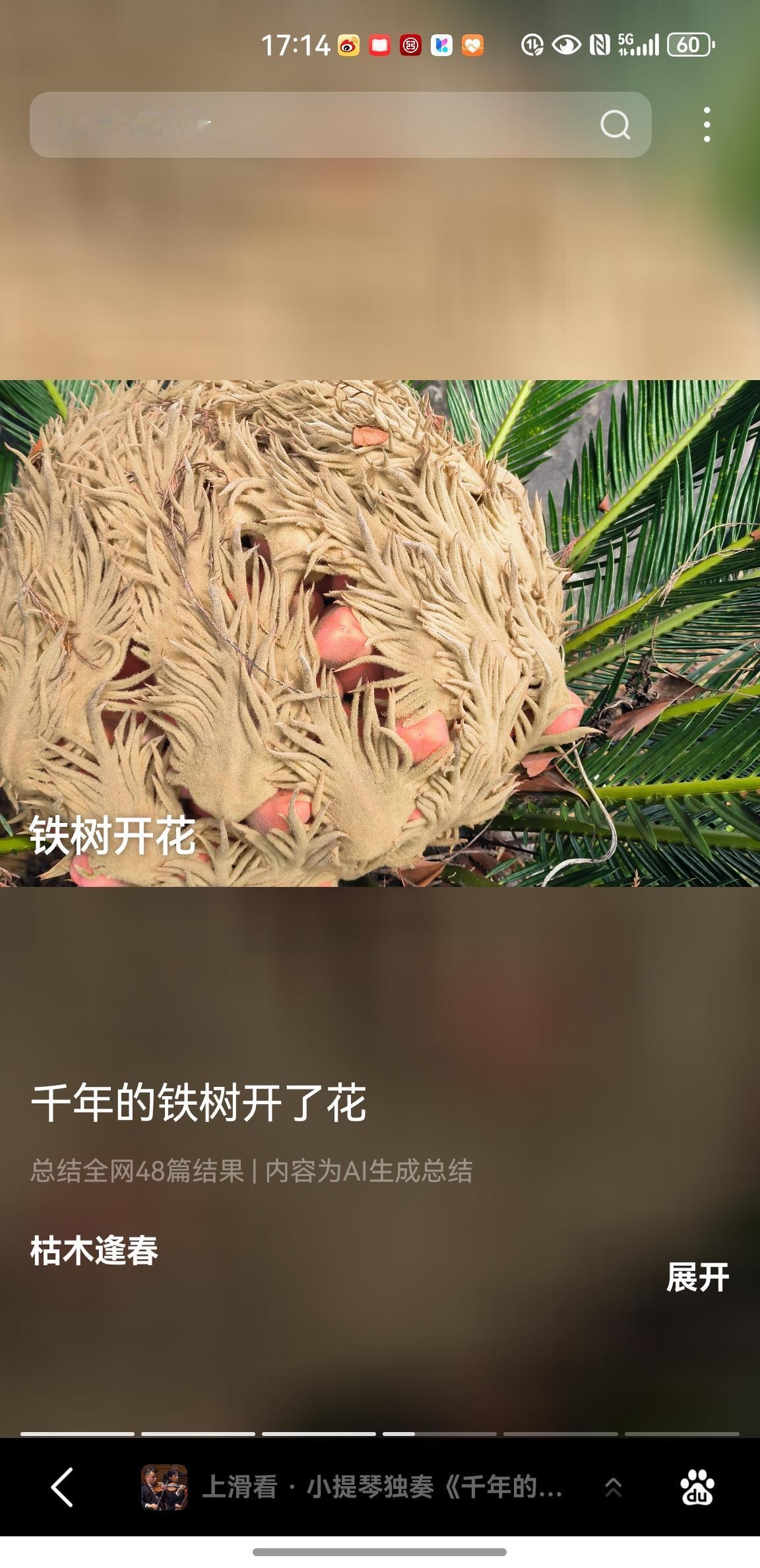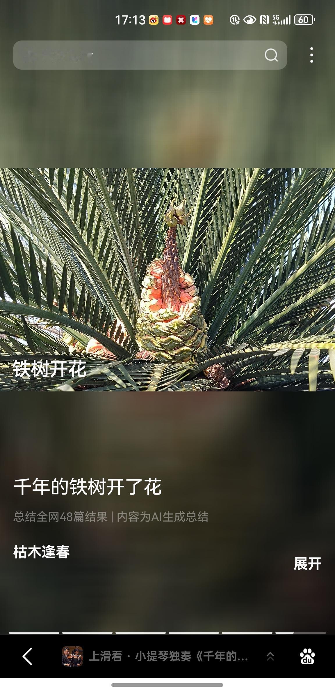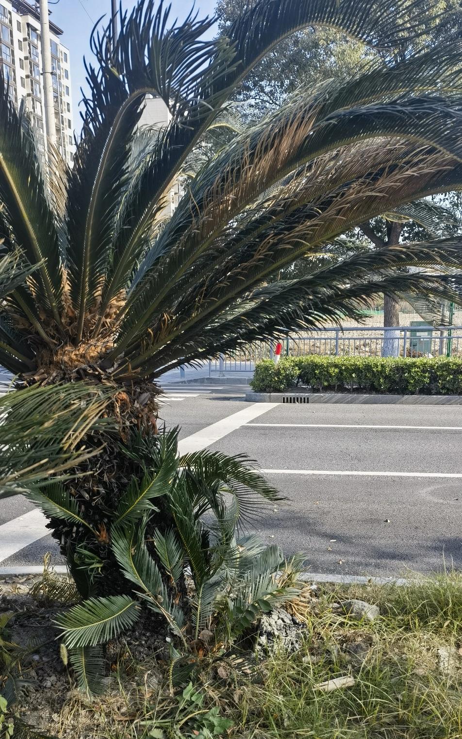 我初次知晓世界上存在“铁树”这一珍稀植物,源于一首歌——《千年的铁树开了花》这首歌,它是七十年代电影《青春》的插曲。电影讲述了一位聋哑儿童在医生悉心治疗下开口说话的故事,用铁树开花来比喻极难实现之事终获成功。 从那时起,“铁树”便深深烙印在我青春的记忆里,难以忘怀。当时我以为铁树寿命极长,开花要等上千年,着实不易。后来,在对铁树有了直观认识后,我才明白这是极为夸张的表达。 我第一次见到铁树是上世纪90年代末在青岛崂山。当时导游特意介绍,印象里那棵铁树三四米高,茎干粗壮,上面的羽叶如倒扣的伞般展开。此前,我从未见过铁树,更不知其模样。 后来我去过很多地方,见到的铁树也多了起来。我了解到这种植物主要分布在南方,北方较少,开花的铁树更是少见。 铁树,俗称苏铁、凤尾蕉,是苏铁科苏铁属的裸子植物,被誉为“植物活化石”。其茎干呈圆柱状,高可达2 - 8米,羽状复叶集生于茎顶,叶片革质坚硬,呈深绿色。因其起源可追溯至恐龙时代,具有极高的科研与观赏价值。 铁树原产于中国南部、日本、菲律宾等热带及亚热带地区,喜温暖湿润、阳光充足的环境,耐旱但不耐寒,生长缓慢,寿命可达200年以上。在南方温暖地区,树龄10年以上的铁树可正常开花,而北方因气候限制开花较少。它具有经济、药用和观赏价值,还有深厚的文化寓意,因开花罕见,民间视其为吉祥、坚贞的象征,有“铁树开花”的典故。 这次我在上海金山区住了一段时间,那里的铁树很常见,还有开花的,种子又大又饱满,我还特意收集了几颗。 我对铁树总有一种好奇与亲切感,曾以为它是珍稀植物。过去我对铁树了解甚少,如今有了更多近距离接触的机会,还查阅了相关资料,总算对它有了一定认识。 世界上的植物千差万别、种类繁多,其中的奥妙无穷无尽。好奇心驱使我们去探索,这也是增长知识的过程。 奇异铁树 铁树枝头花
