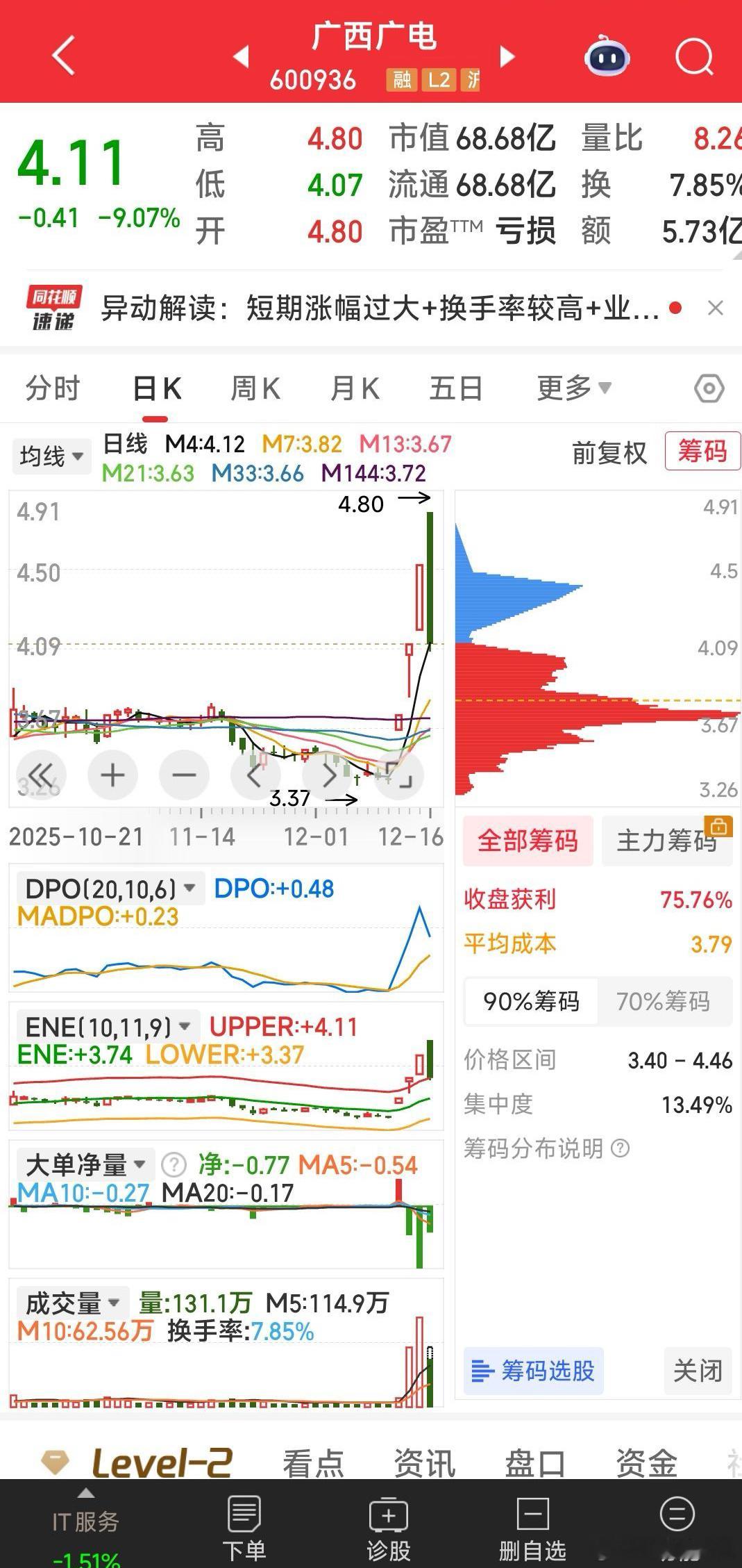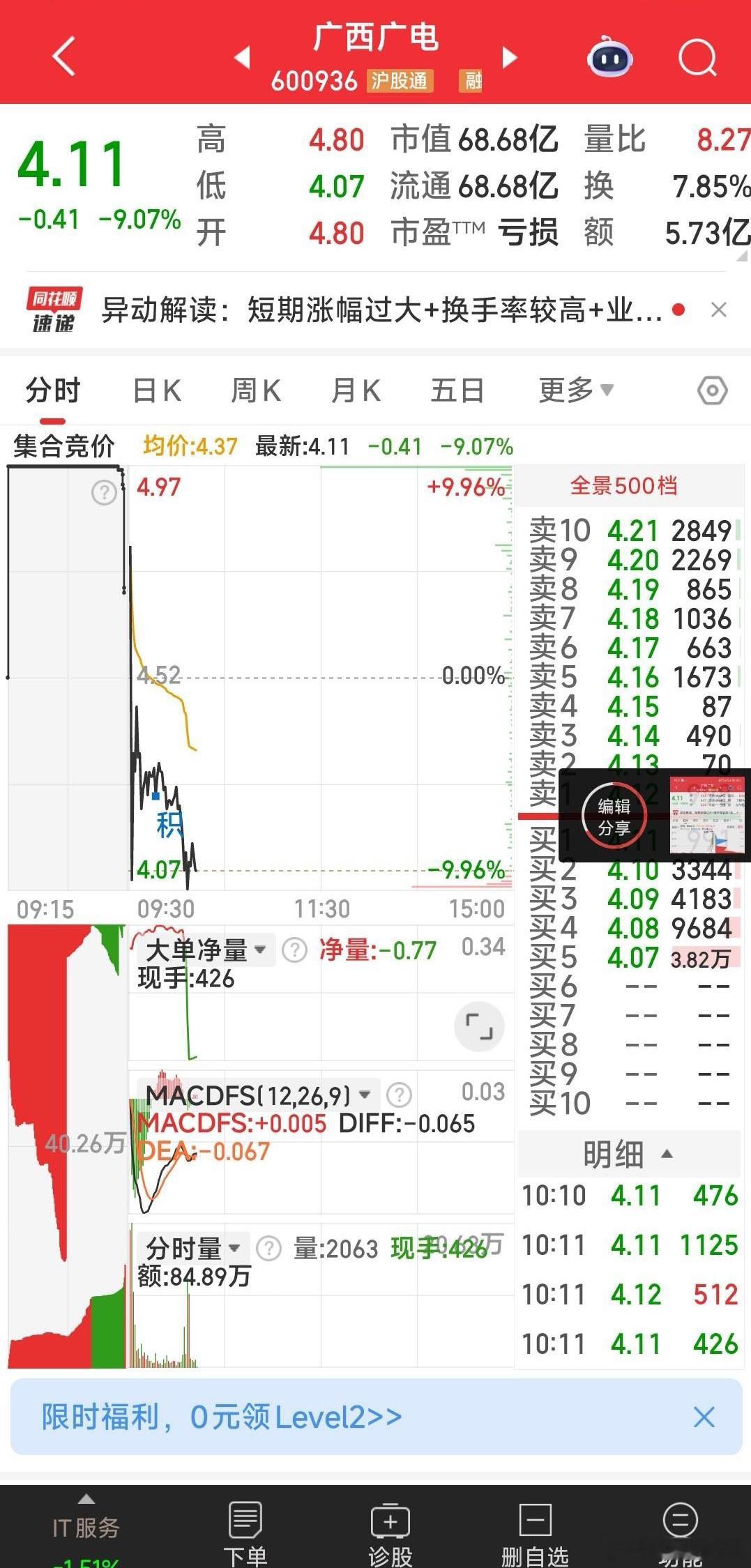 广西广电,改名北投科技,现大跌,4.1元以下都是加仓机会。