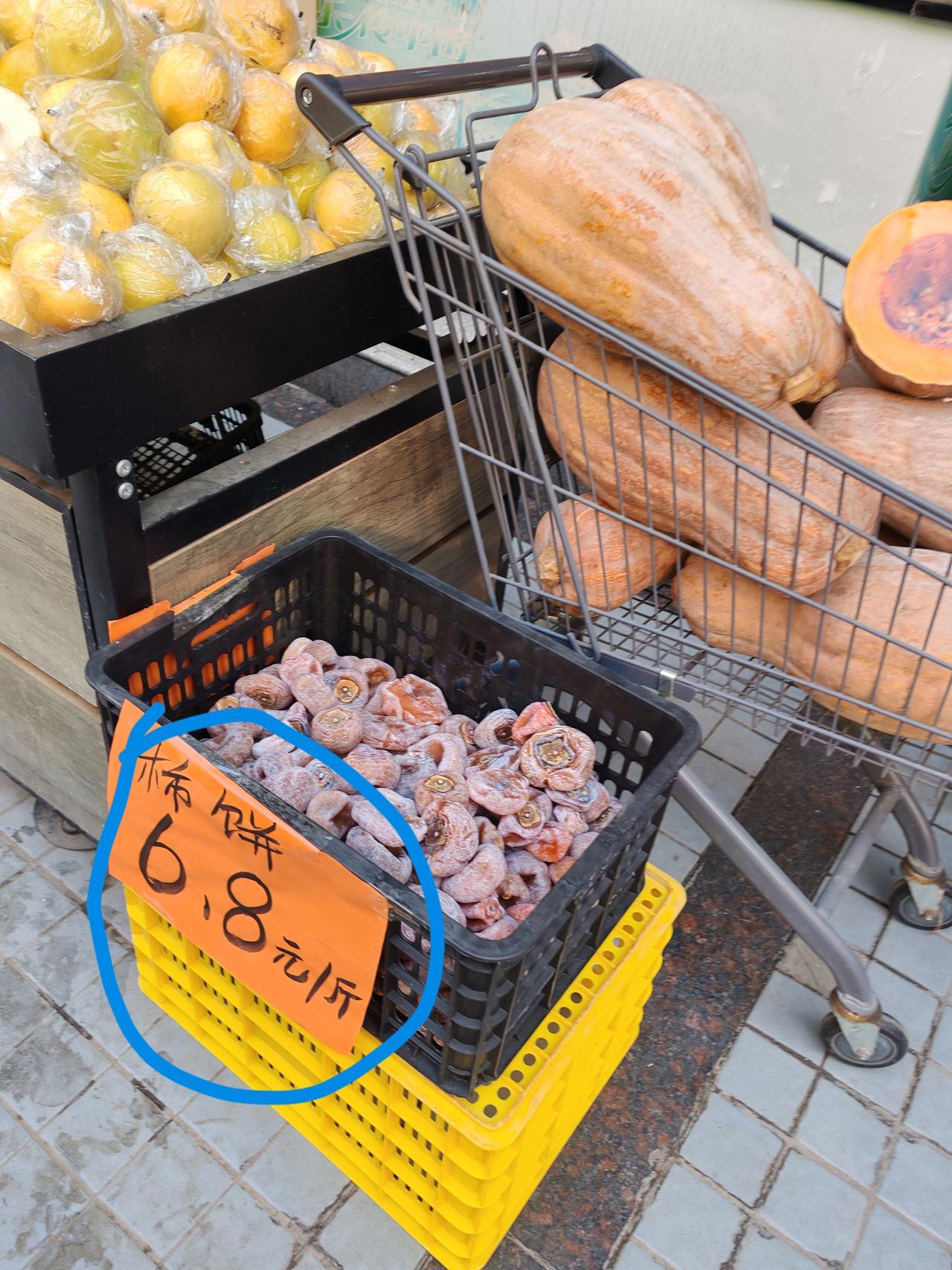 分享一下柿饼行情 12月16日,陕西西安。今天早上我路过市场,留意到了大量的柿饼已经开卖,价位有差别。 市场口这一家摊主是个小伙(图一),他的柿饼10元1斤,不断强调新货上市;我继续前行,又发现了一个小摊(图三),这家货品不多,一个黑框子里放着一些柿饼,上面挂着一个醒目的牌子,写着“柿饼6.8元/斤”,同时,小喇叭不断在播报说是优惠尝鲜价。 最后见到了图二这个阿姨,她说老家是富平县的,这是她自家做的柿饼,每1斤13元,我表示有点小贵,阿姨笑着说: “美女,这你就不懂了,他们卖的是厂里货,我这是我屋的,没加东西” 这方面我不太懂,我认知里的做柿饼就是把柿子串起来风干而已,应该没啥科技狠活,听见阿姨一说,迷糊了。 一句话,我感觉柿饼的差异还是大,摊主都说自己卖的是富平柿饼,但肉眼可见的品相有差别,价格也有差别,普通消费者却不懂这些。 大家说说,你那里的柿饼现在是什么行情?一起分享一下。