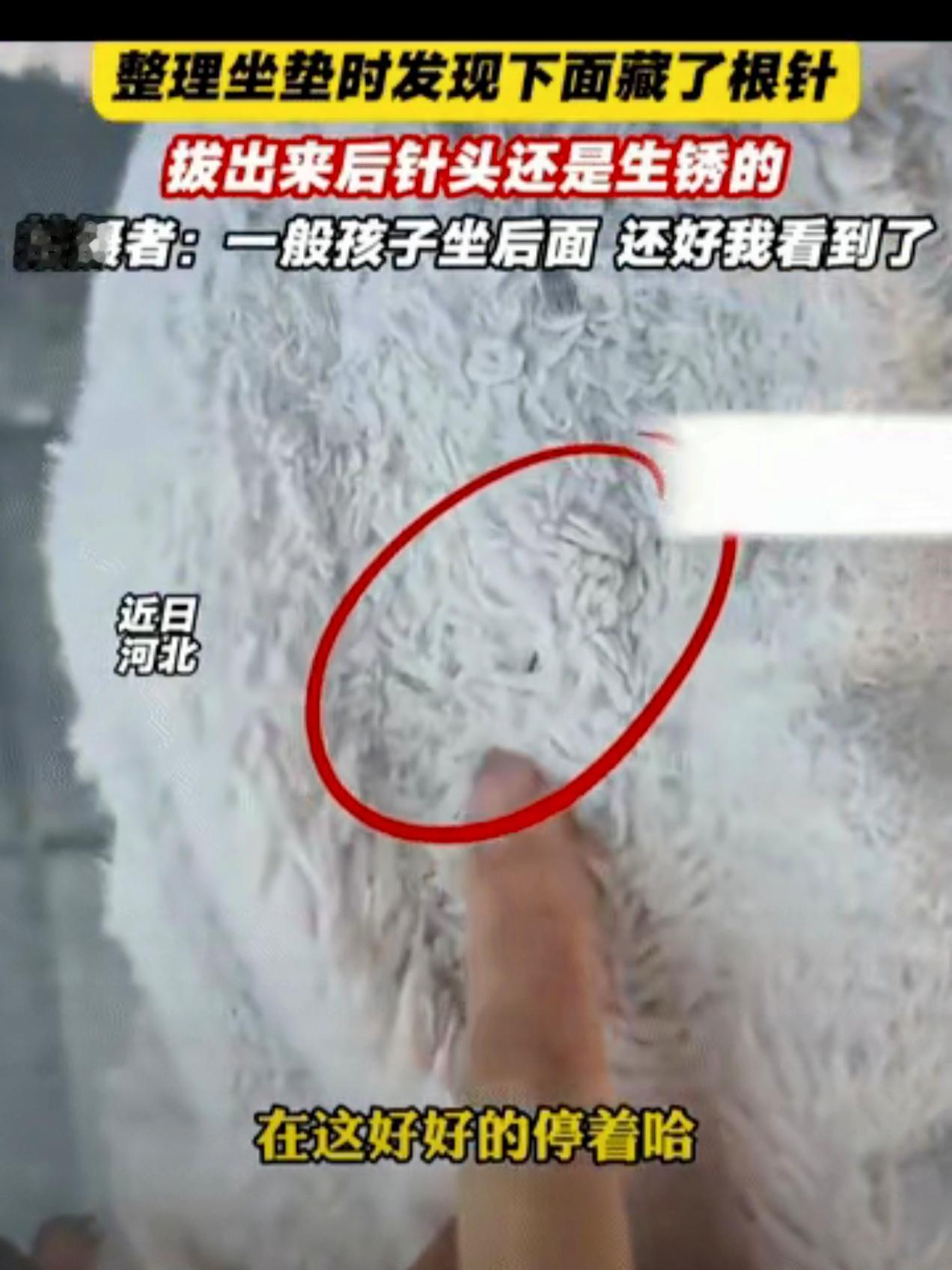 真是太坏了!近日,一河北女子准备骑电动车出门,却遭到让人后怕的一幕。 就在她臀部刚触碰电瓶车车座时,还没完全坐下,便感到不对劲,好像有什么尖的东西在扎她。 她立马吓的一激灵,急忙下车看看是怎么回事? 这一看不要紧,却发现车座上的坐垫有点不对劲。 经过一番查找,她竟然在坐垫中发现了一根绣花针。 更令人震惊的是,这根针已经生锈了。女子顿时感到一阵后怕。 如果她没有及时发现,而是直接坐下去,后果将不堪设想。针头上要是有什么病毒,那她可就惨了。 这种不道德行为不仅让人气愤,也引发了人们对公共安全的关注。 究竟是谁那么没素质,在这位女士的车座上放针? 强烈建议相关部门介入调查,通过调取监控等方式找出这个人渣。这样的人心里实在太坏了,必须受到法律的惩罚。