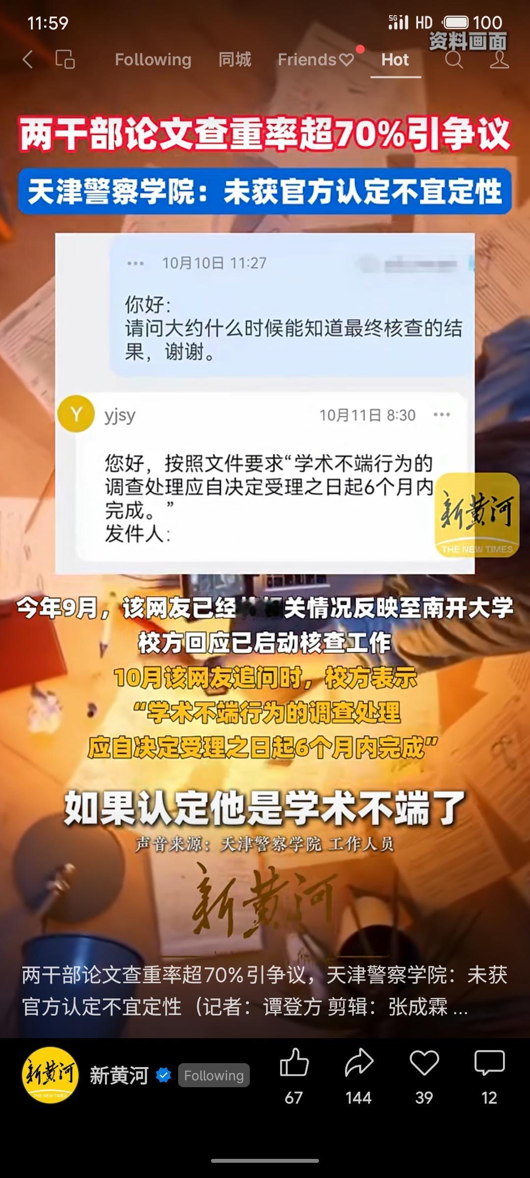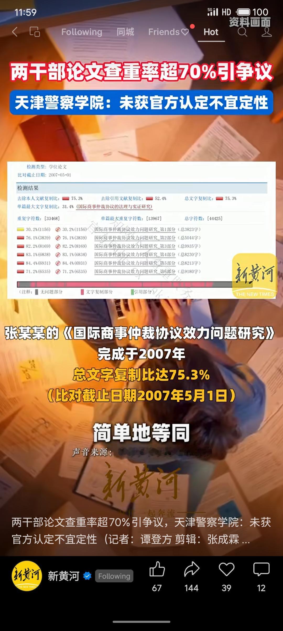 天津警察学院两名干部被曝硕士论文查重率超70%,均毕业于南开大学。面对质疑,校方以“未获官方认定不宜定性”回应,南开大学已启动核查。如此高的重复率已严重触及学术底线,官方回应却显迟滞与回避,这不仅关乎个人诚信,更暴露出对学术不端问题的查处态度与机制存在短板。