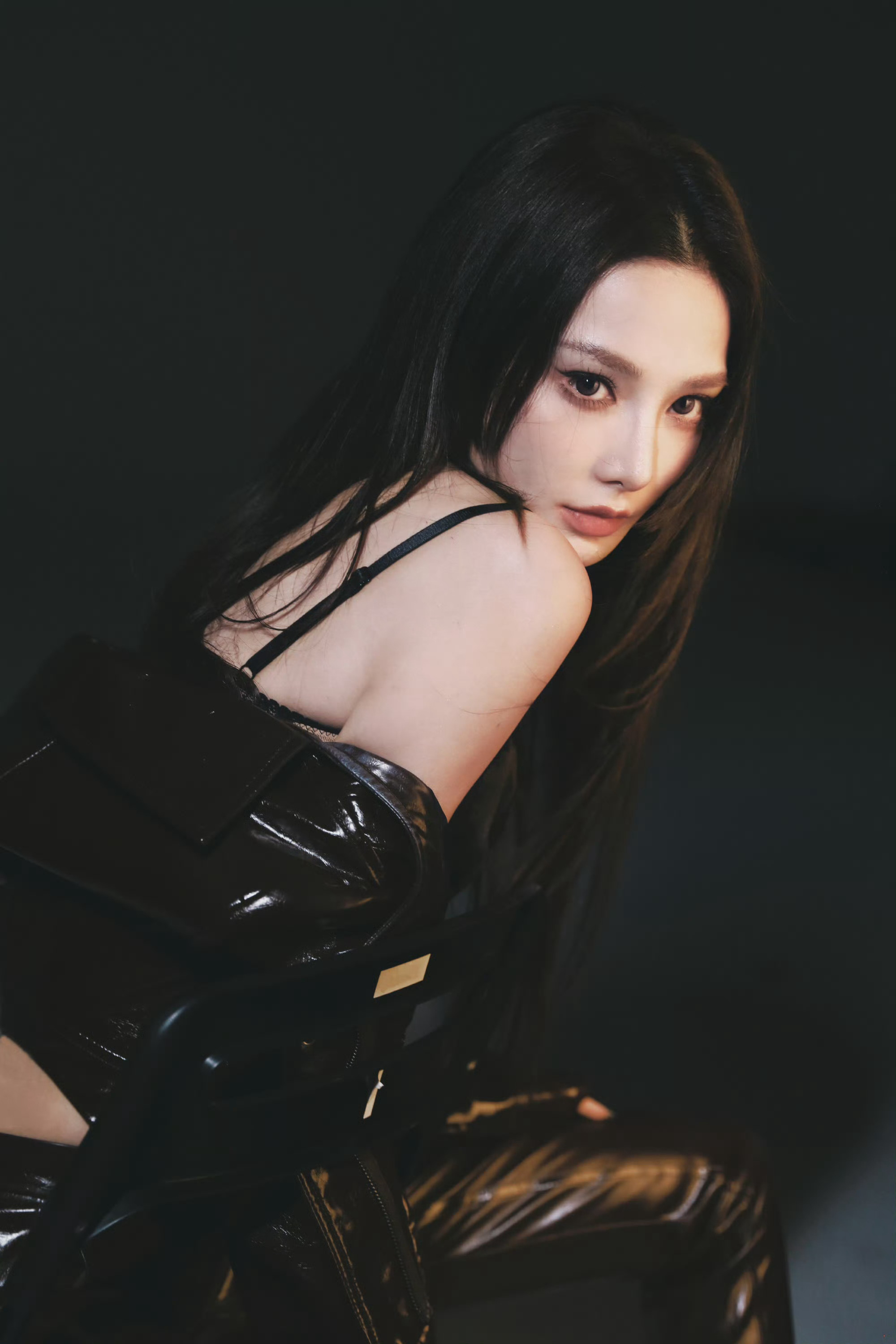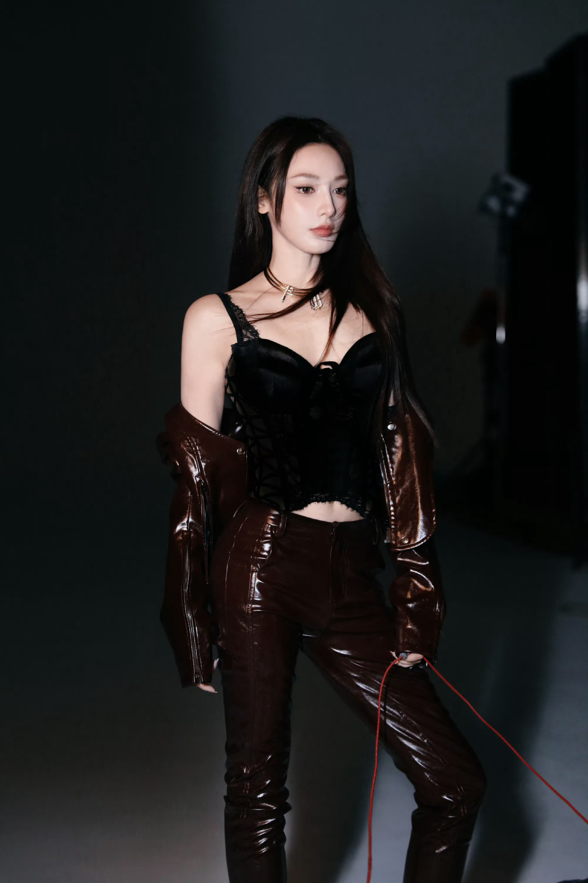 江疏影以齐刘海+黑框眼镜的全新造型亮相PORTS活动,搭配黑色短裙与丝袜,风格酷