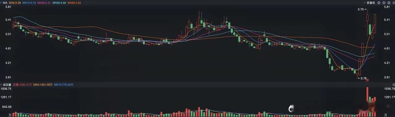 永辉超市今天开盘6分钟就拉到了涨停板,应该说这是一次经典之作。过去的三个交易日,股价到了前期的密集成交区出现了上蹿下跳的走势,单日的震荡幅度也是非常之大,但这仅仅是日线级别的,这个时候如果仔细观察周线走势,出现了一根比较明显的大阳线,并且突破了周线60日均线的压制,意味着周线级别的多头趋势的到来。现在看基本可以确认此前几天的大幅度震荡属于典型的洗盘了,这种做法非常老道,就是利用市场资金对重要阻力区的担心,从涨停到跌停的手法,将不坚定的资金震仓出局,从今天涨停板的大阳线走势看,几乎吞吃了过去三天的震荡走势,可以说开启了新的向上旅程。其实这样的震荡走势,对普通的投资者来说,是比较难以把握的,尽管今天永辉超市涨停了,我觉得大多数人还是该敬而远之,而对持股者来说,就是比较生动的斗智斗勇过程了,如果这个过程能够通过盘面看出其中的破绽,我想到目前持股应该是没有问题的。