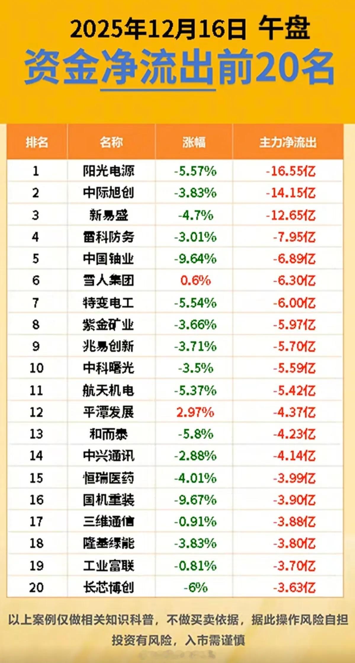 12.16周二 主力大资金 流向 TOP20!大消费概念,百货零售,免税店,乳业食品饮料等资金流入。贵金属黄金白银,航空发动机,电源设备,影视院线,军工,超导材料,国产航母,有机硅等资金流出较多