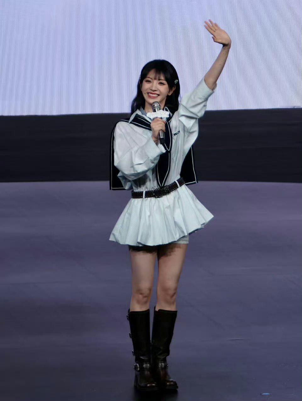 吴艳妮在成都穿着短裤大腿看起来很粗壮,表情自信又张扬