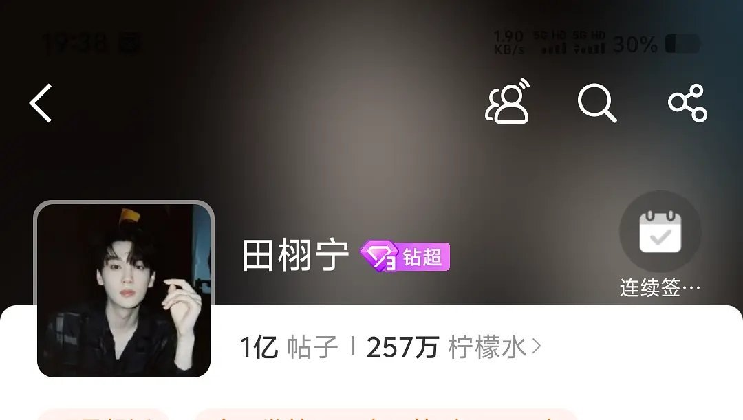 田栩宁超话发帖量5个多月从1千到1亿这真的脱素入爆了