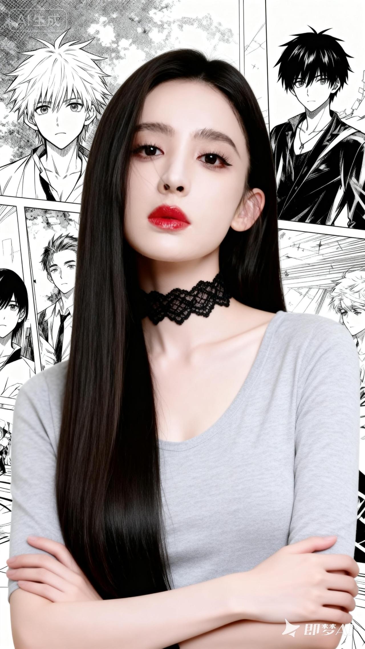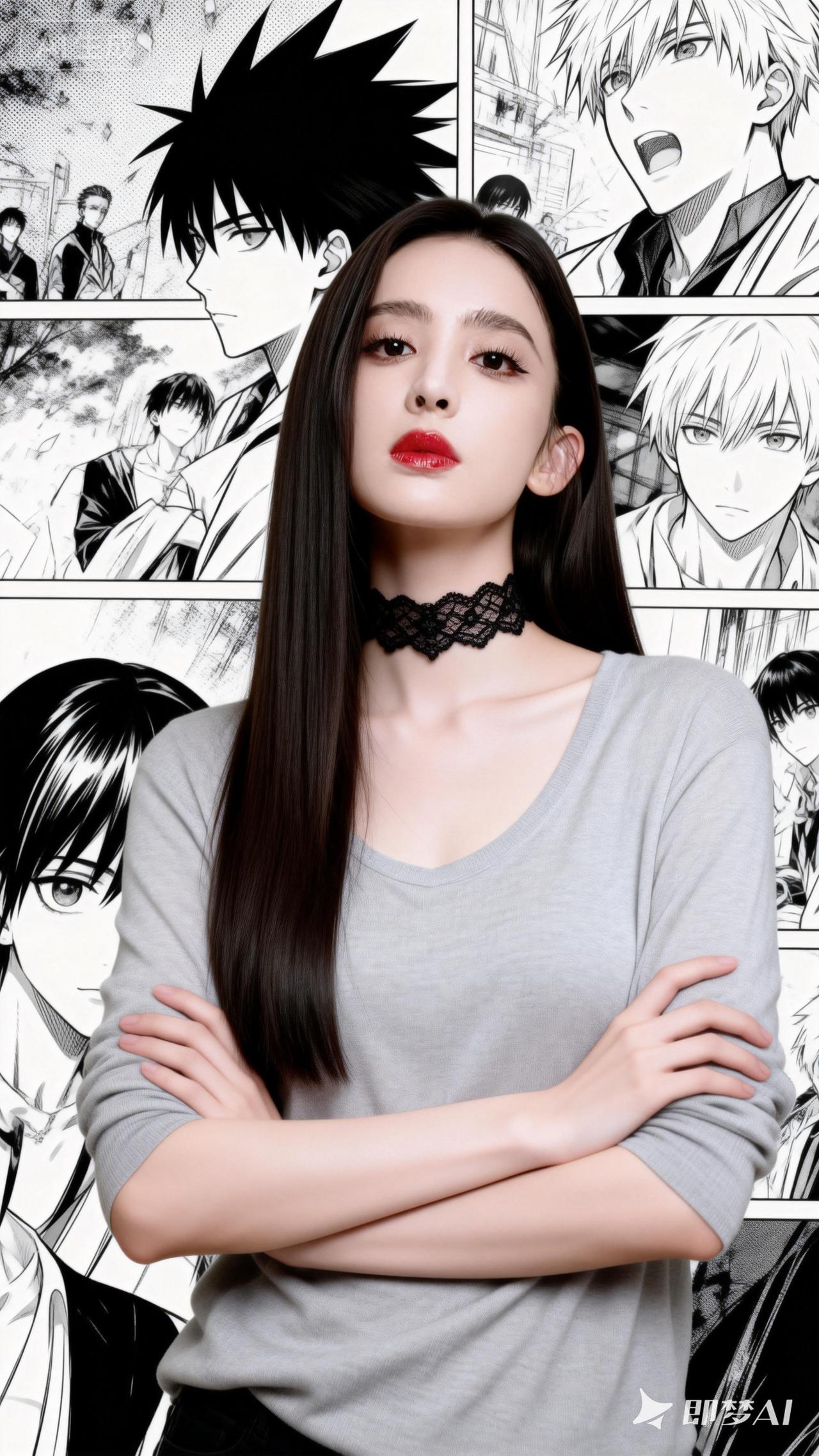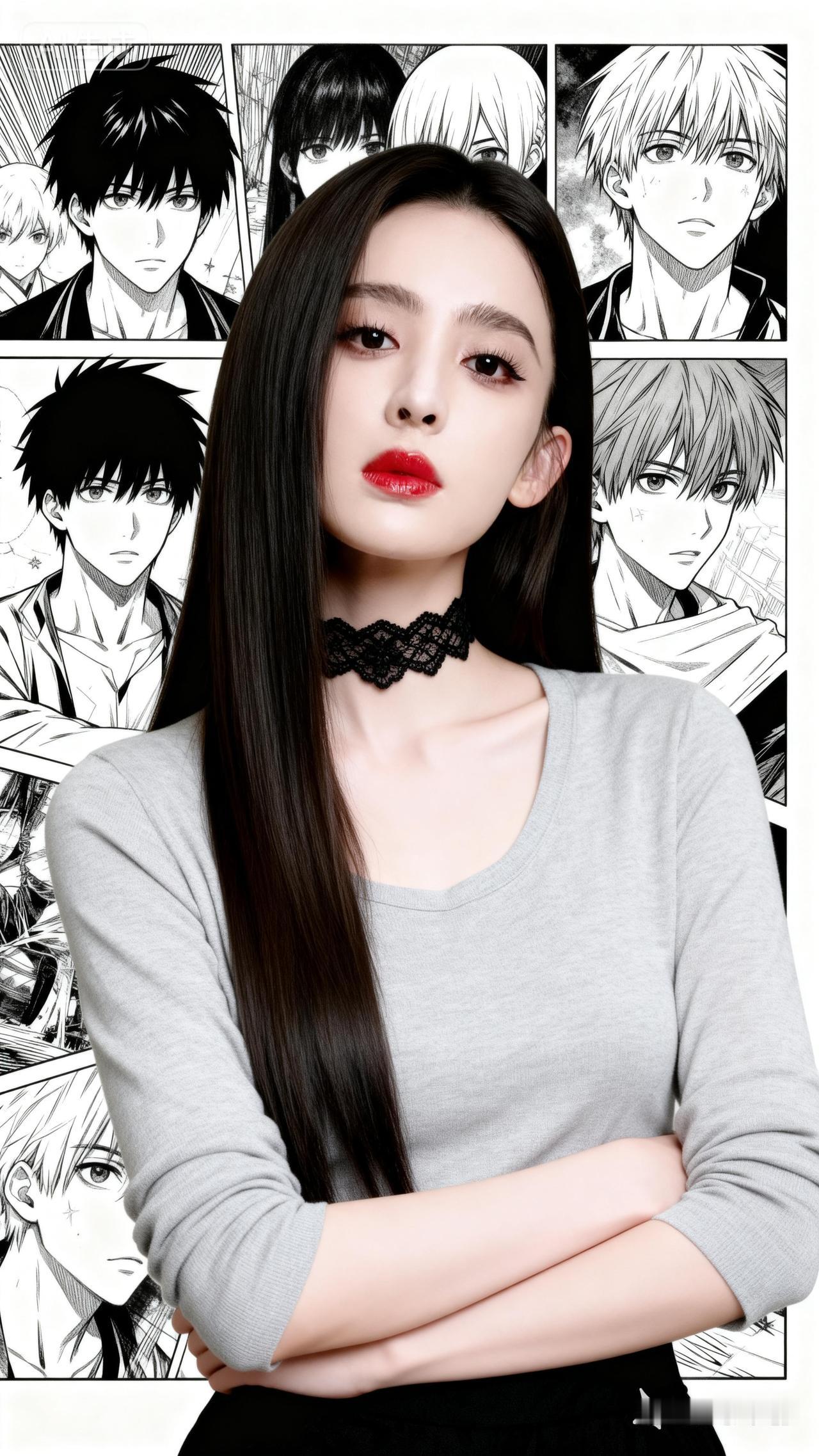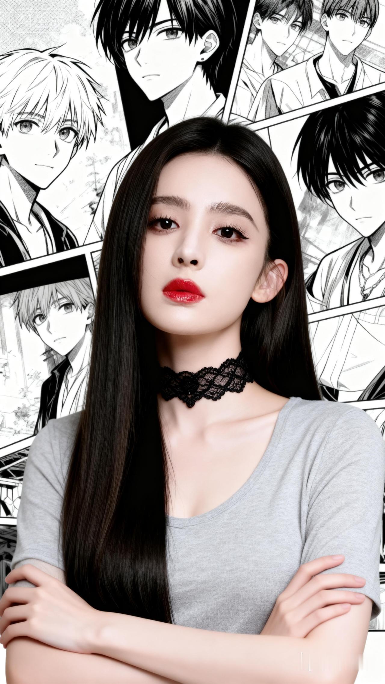 黑发少女与动漫背景的完美融合,复古与现代的碰撞!