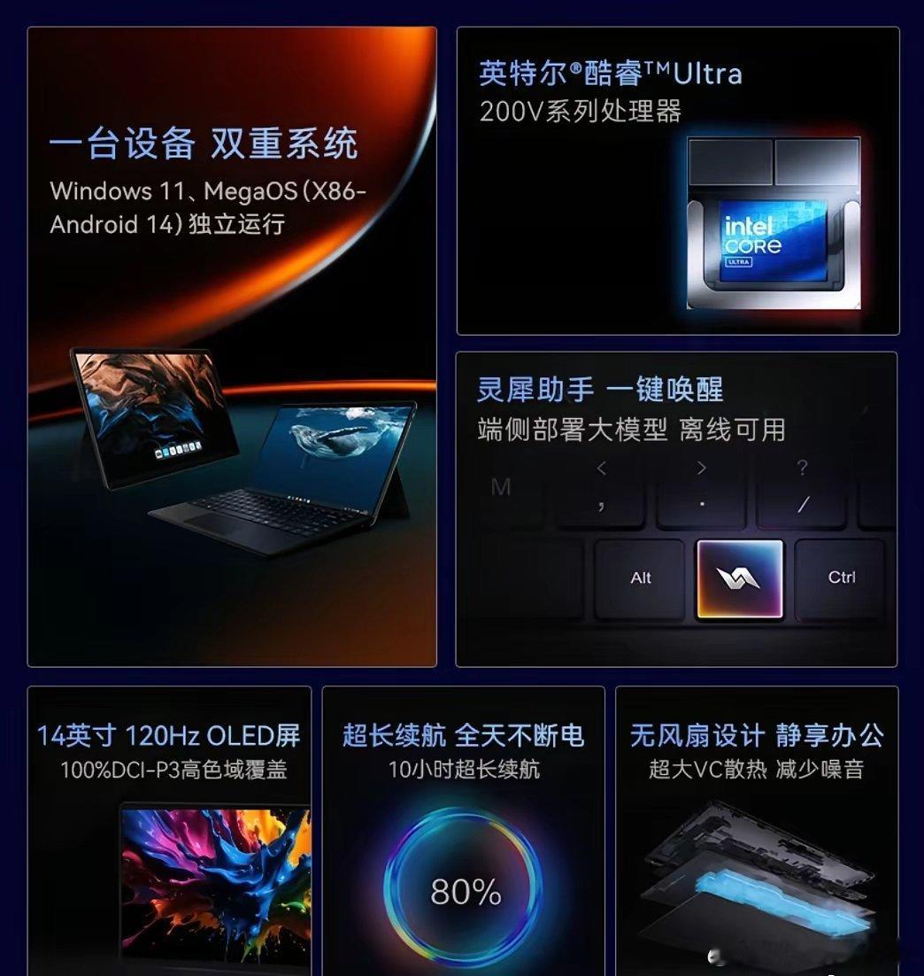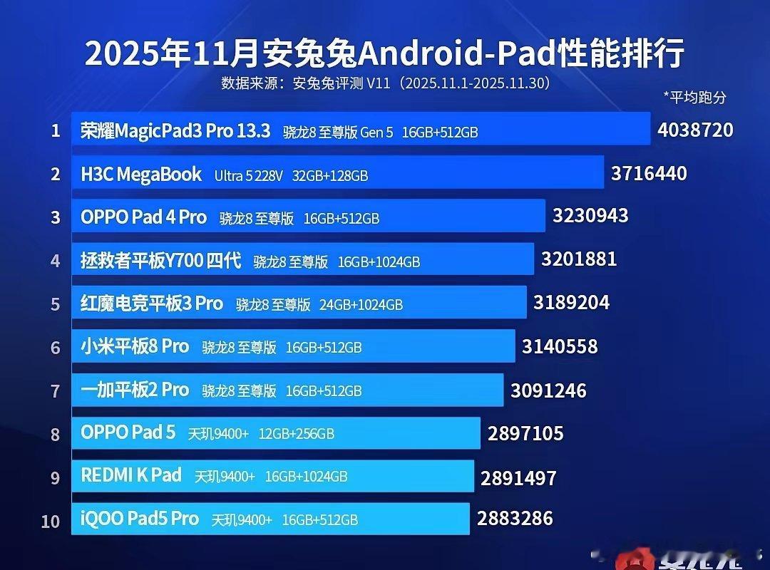 Android Pad的娱乐兔跑分榜!H3C megabook 搭载的是intel 酷睿Ultra5 226V/228V处理器,8核CPU(P核频率4.5GHz),Arc 130V 1.85GHz。Win 11和MegaOS(X86-Android 14)双系统,平台不同,而且英特尔要跑虚拟机,显然在性能跑分方面打不过高通骁龙8gen5……