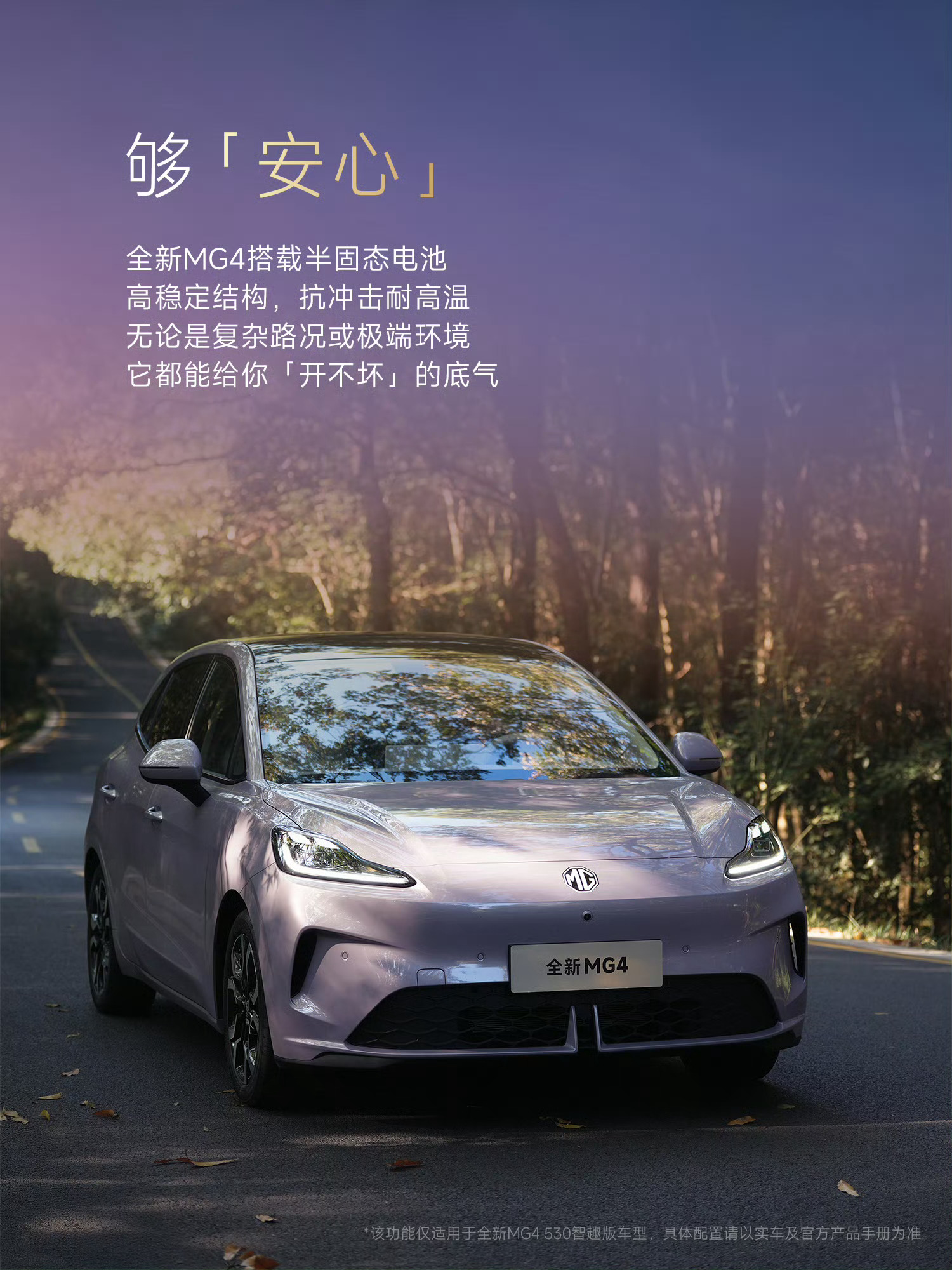 👸谁说女生选车只看外观?我们要的是——好看不张扬,好开不费神,安心不将就全新MG4 颜值能打,好开不累,连停车都帮你搞定TA懂你的审美,也懂你的不安❤️好看、好开、贴心、省心、安心...你想要的,TA都有😎手中握着方向盘,安全感满满从此路上,都是你的主场女生的第一辆车,不将就,就要刚刚好~上汽MG全新MG4半固态安芯版女生的第一辆车